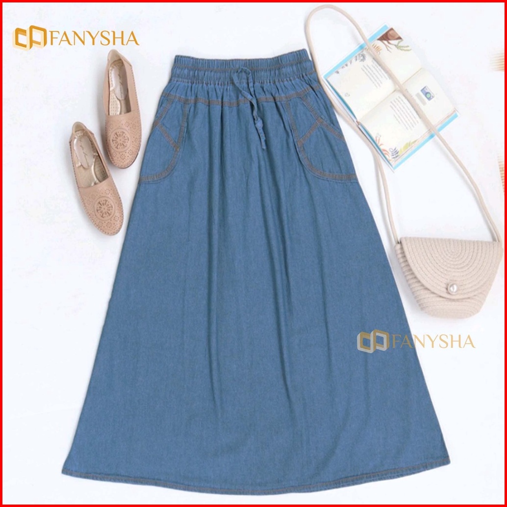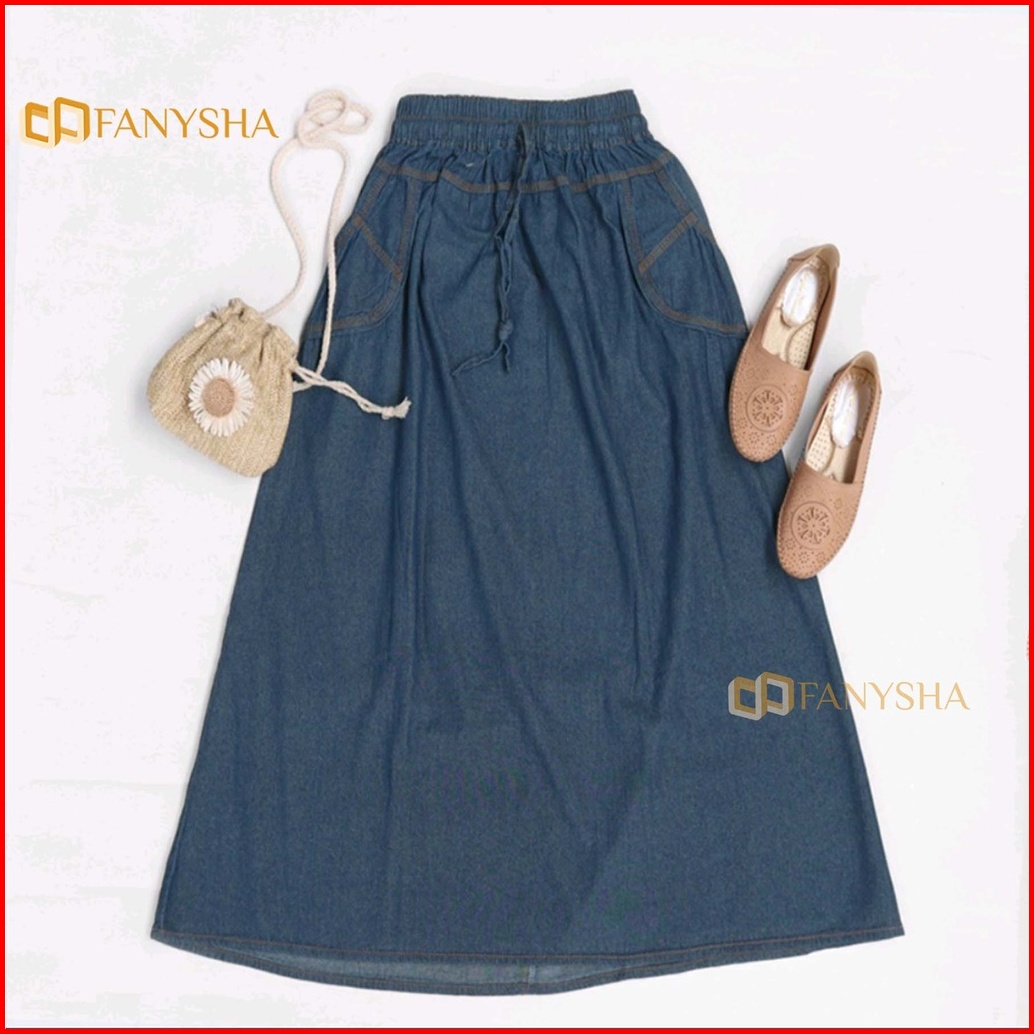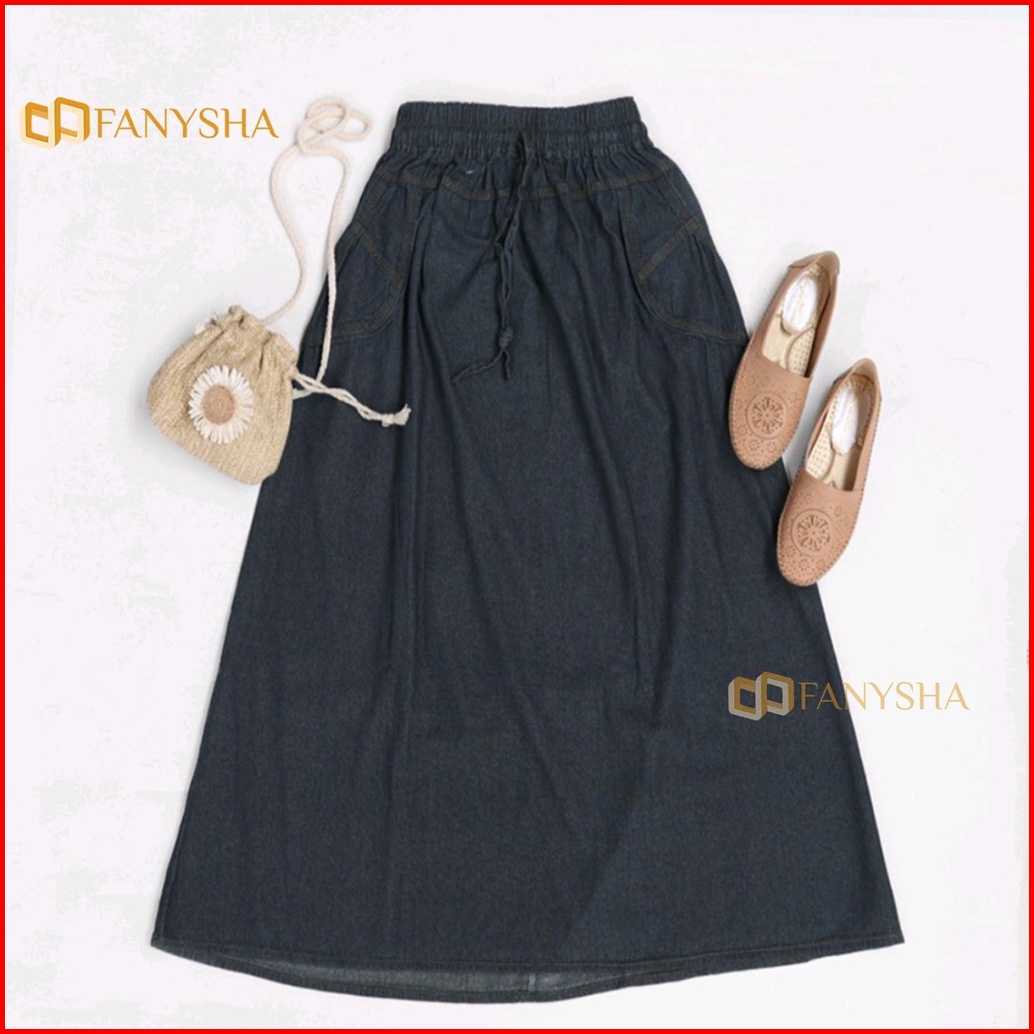 Rok Jeans Panjang Model A Polos Terlaris - Rok Jeans Model A Standar Termurah By Toko Fanysha