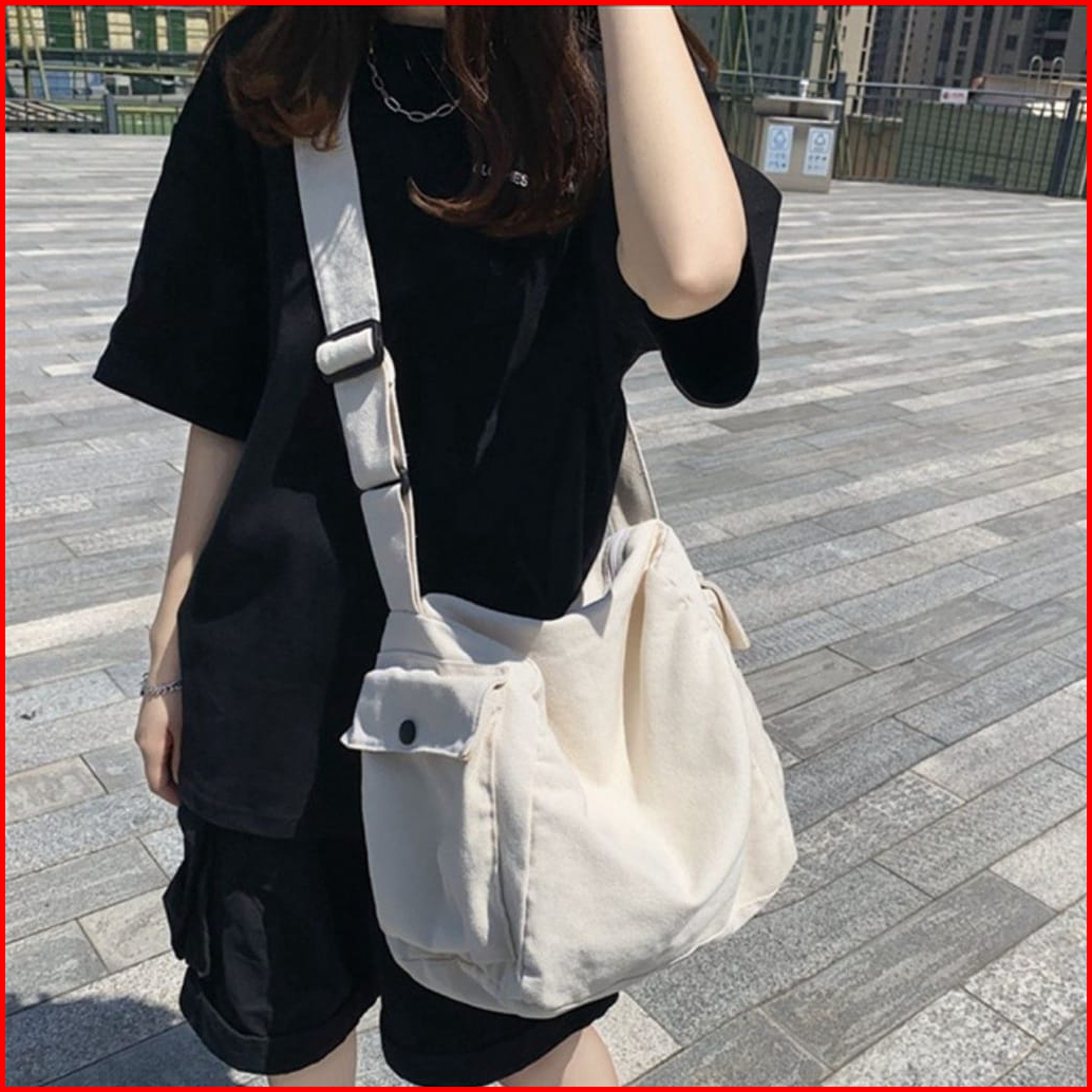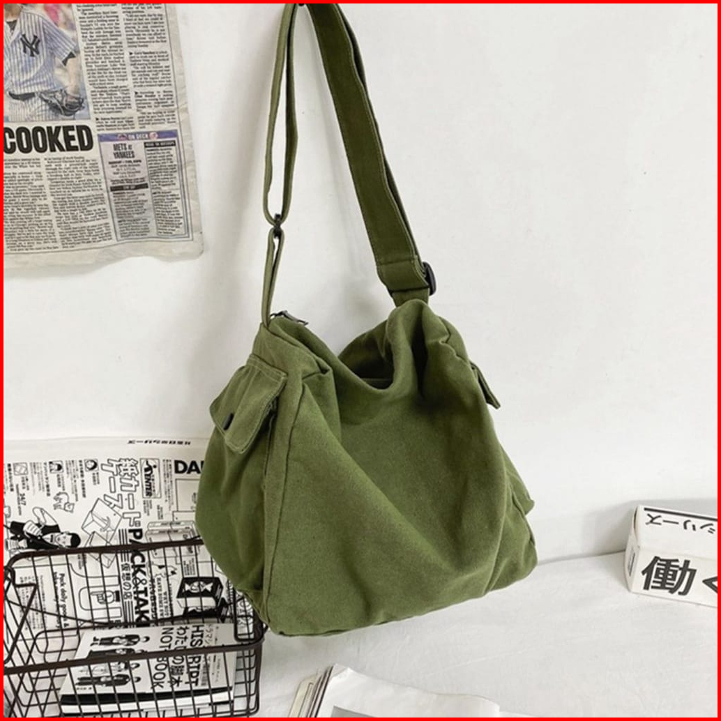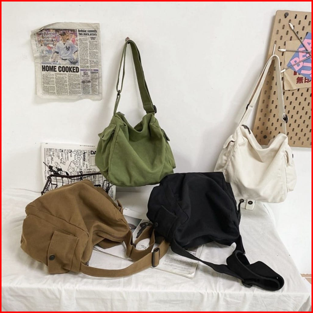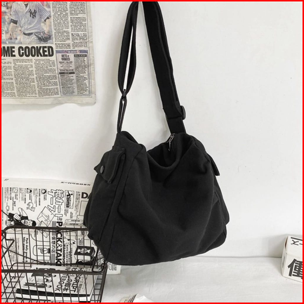 Tas Selempang Sling Messenger Bag Canvas Large Size Premium Full Pocket Unisex Pria Wanita Original