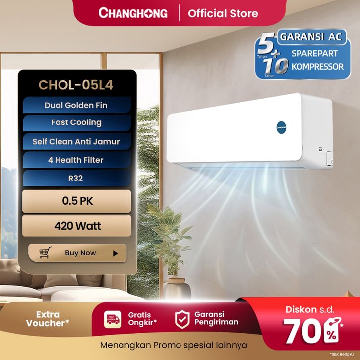 CHANGHONG AC 1/2 PK STANDARD CHOL-05L4 [INDOOR + OUTDOOR UNIT ONLY] [FAST COOLING] [SLEEP MODE] [ECO MODE]