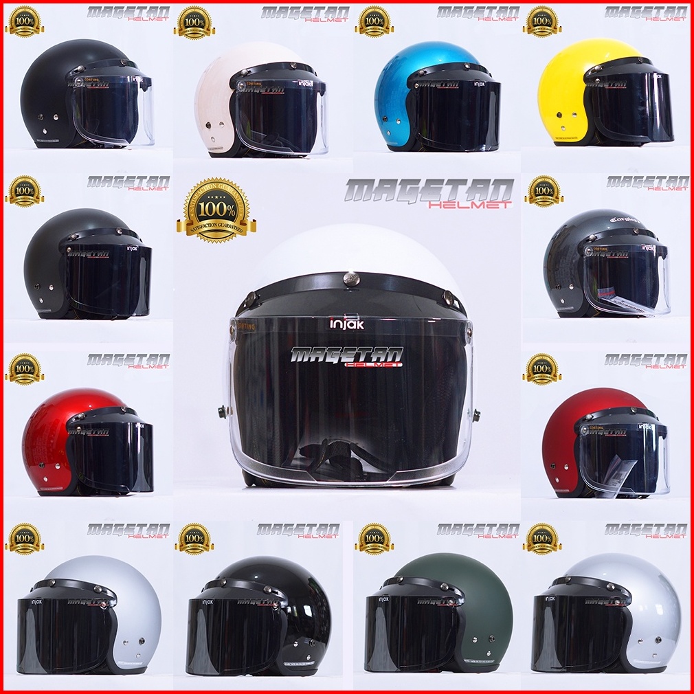 Helm Bogo Dewasa Kaca Datar Smoke Helm Retro Kaca Flat Hitam Sudah Sni