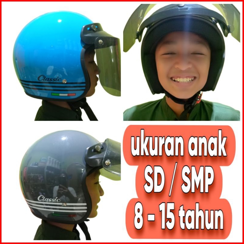 Helm Bogo Junior Remaja Usia 8-17 Tahun Sni Kaca Datar
