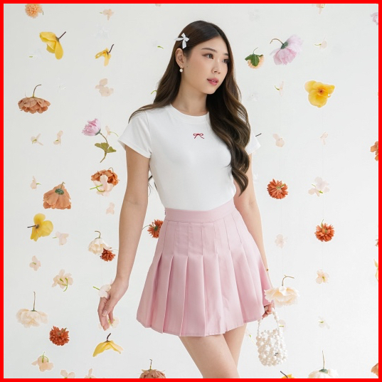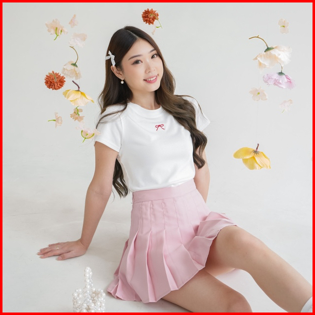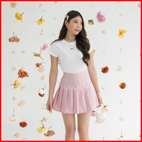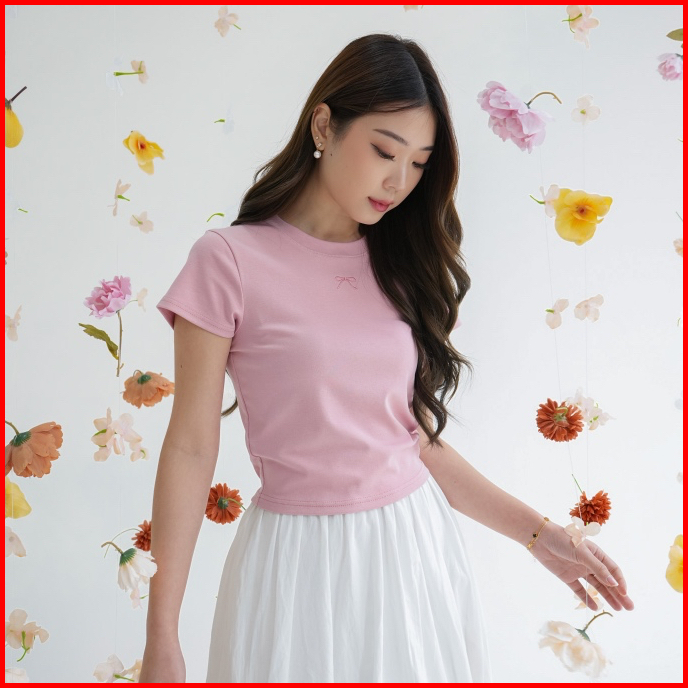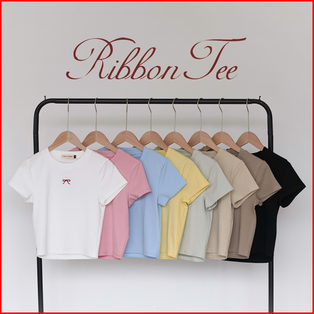 Tavia Ribbon Baby Tee Kaos Wanita Atasan Wanita Casual Korean Top