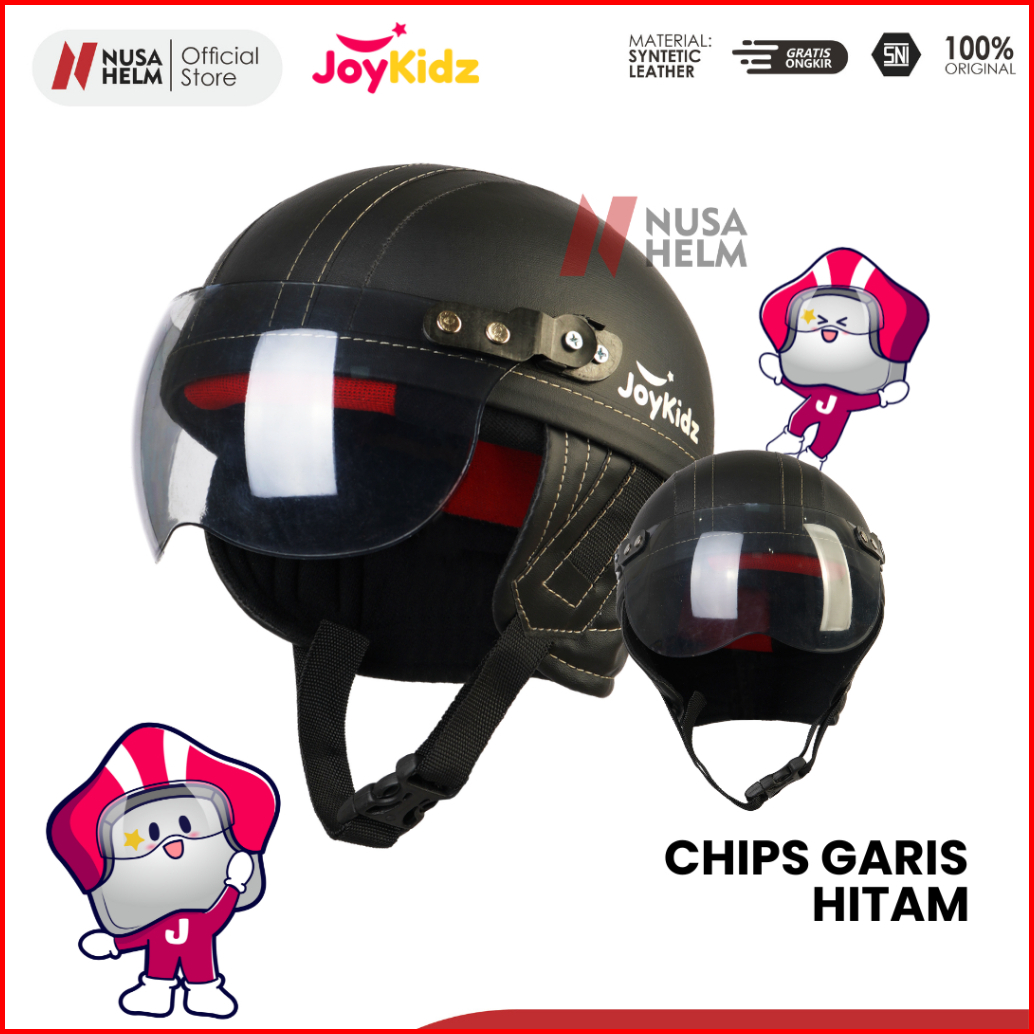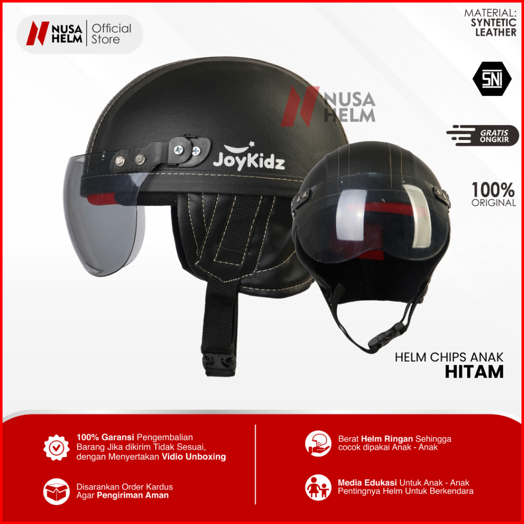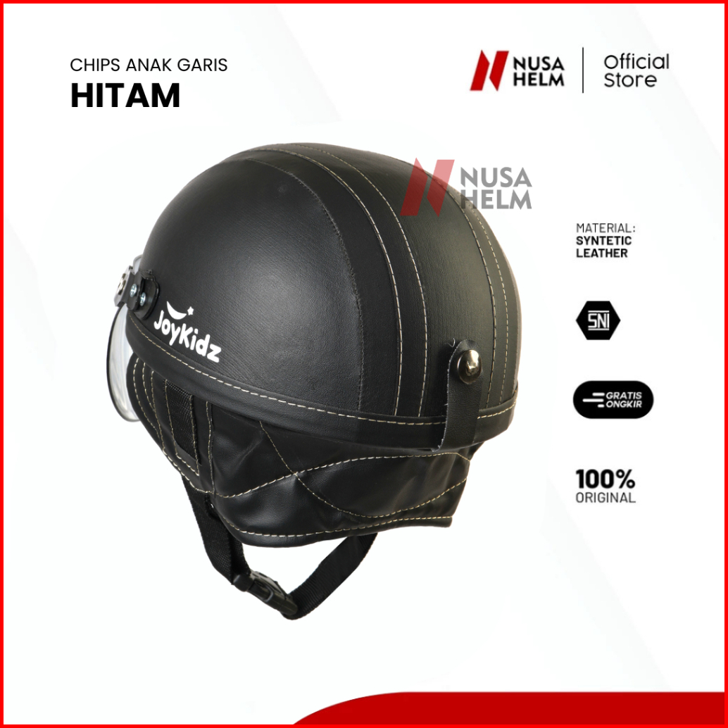 Helm Anak Retro Usia 1 2 3 4 5 Tahun Kulit Premium Model Chips Laki-laki Polos Hitam
