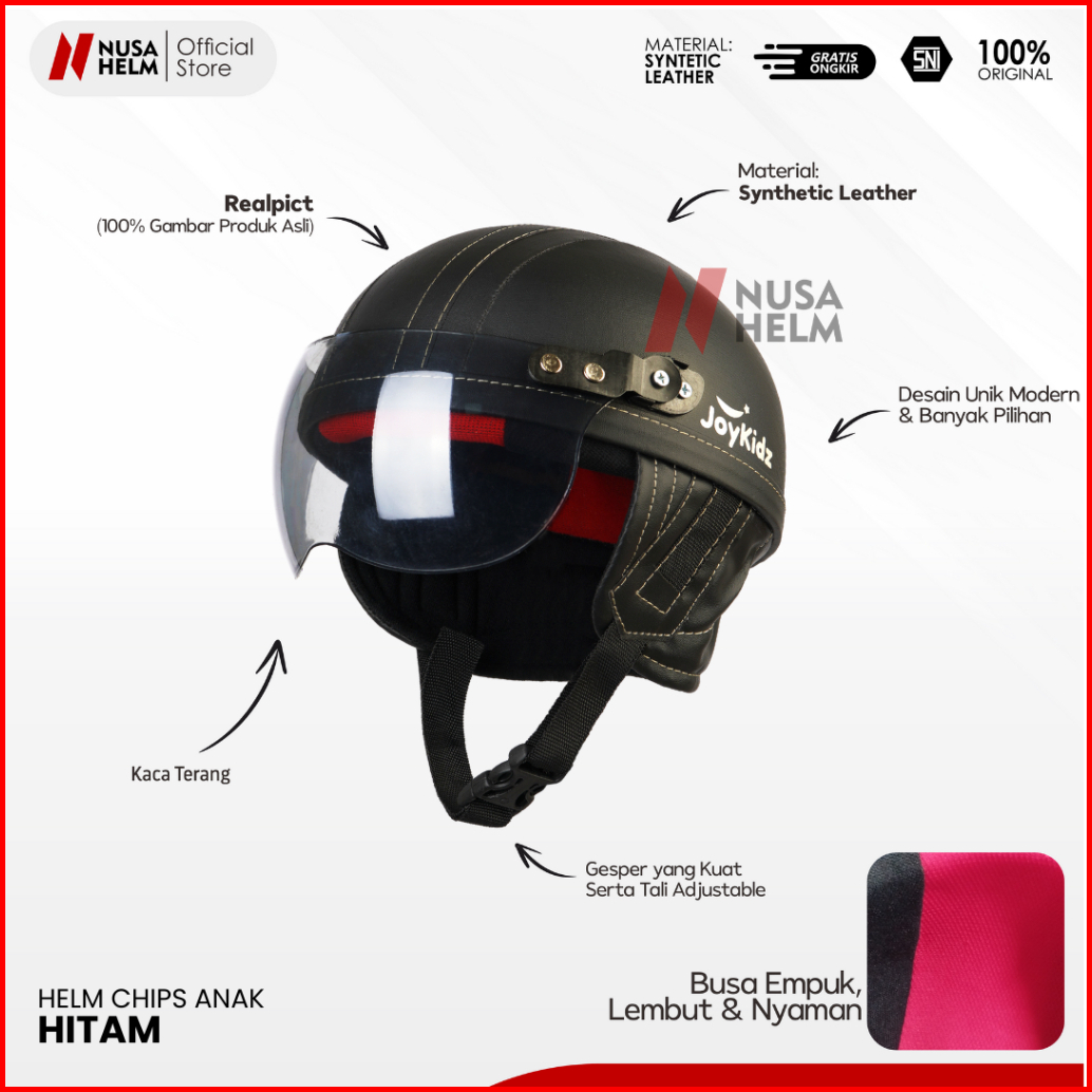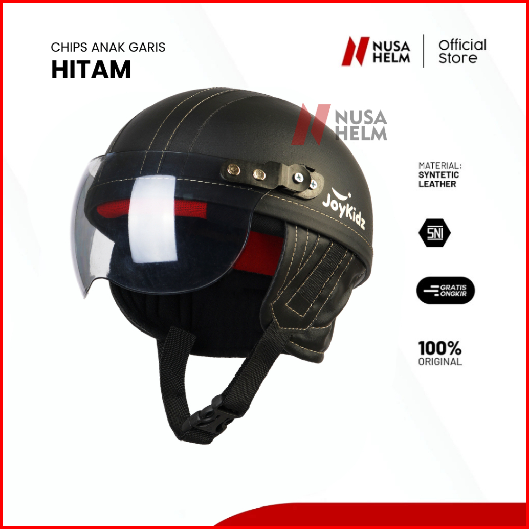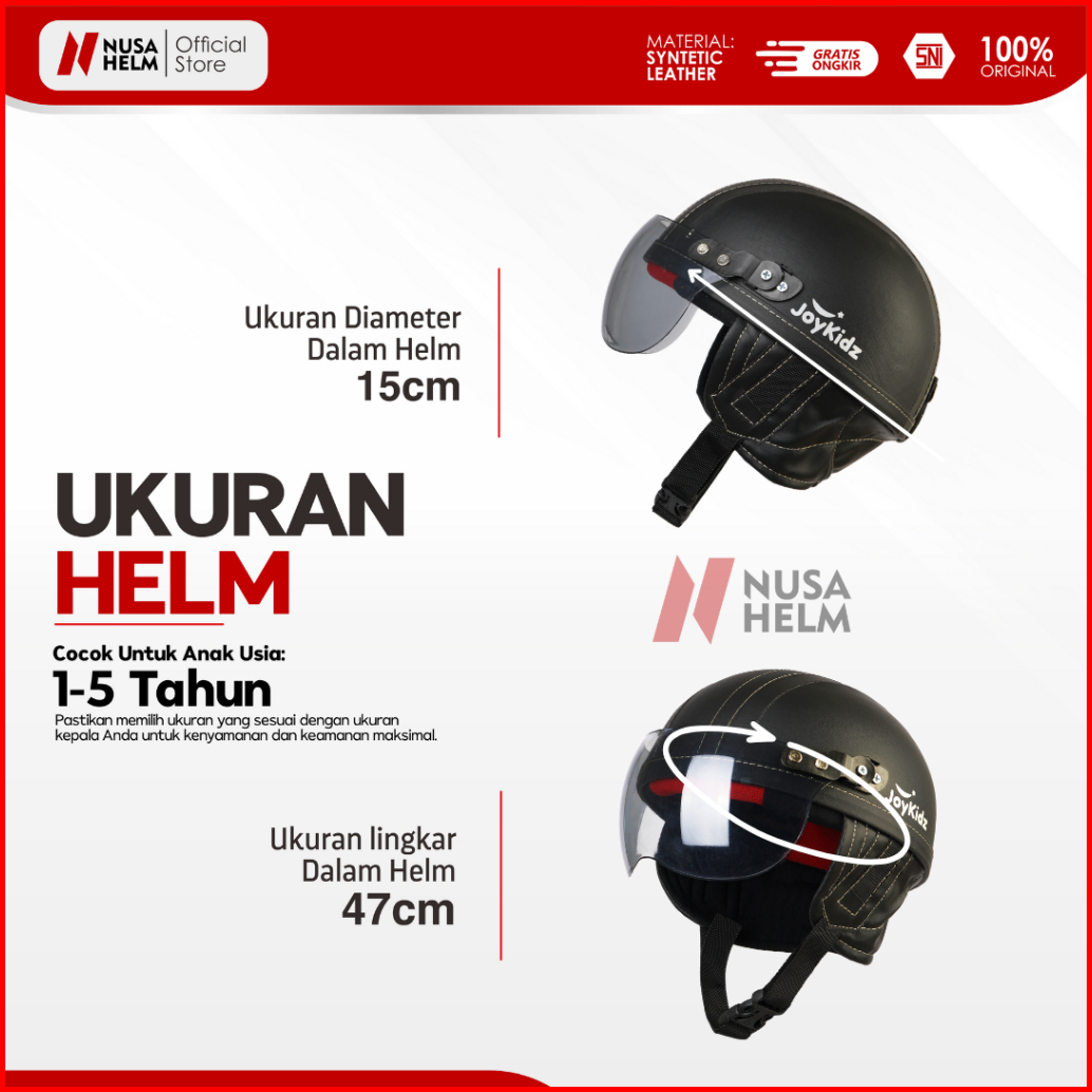 Helm Anak Retro Usia 1 2 3 4 5 Tahun Kulit Premium Model Chips Laki-laki Polos Hitam