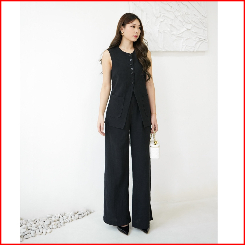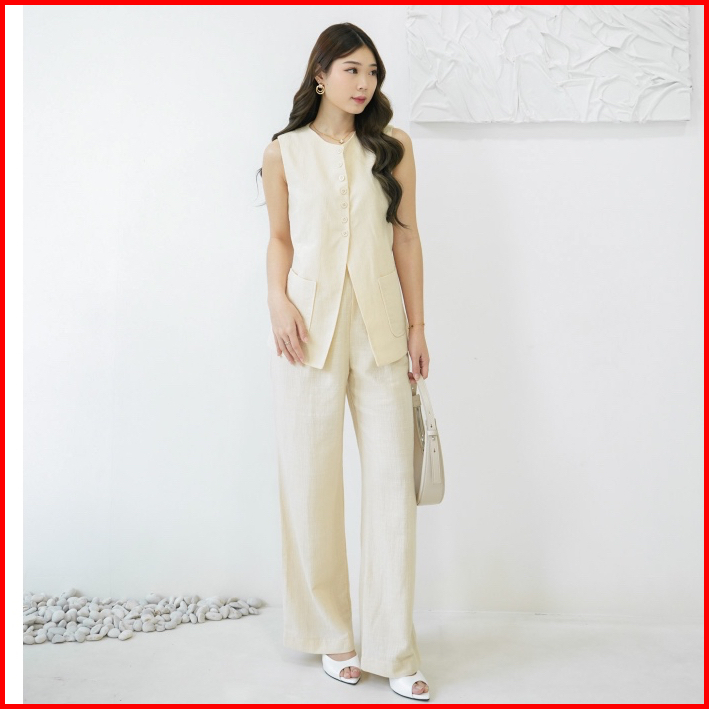 Tavia Lucas Linen Set Setelan Wanita Formal Baju Setelan Wanita Casual Setelan Celana Wanita