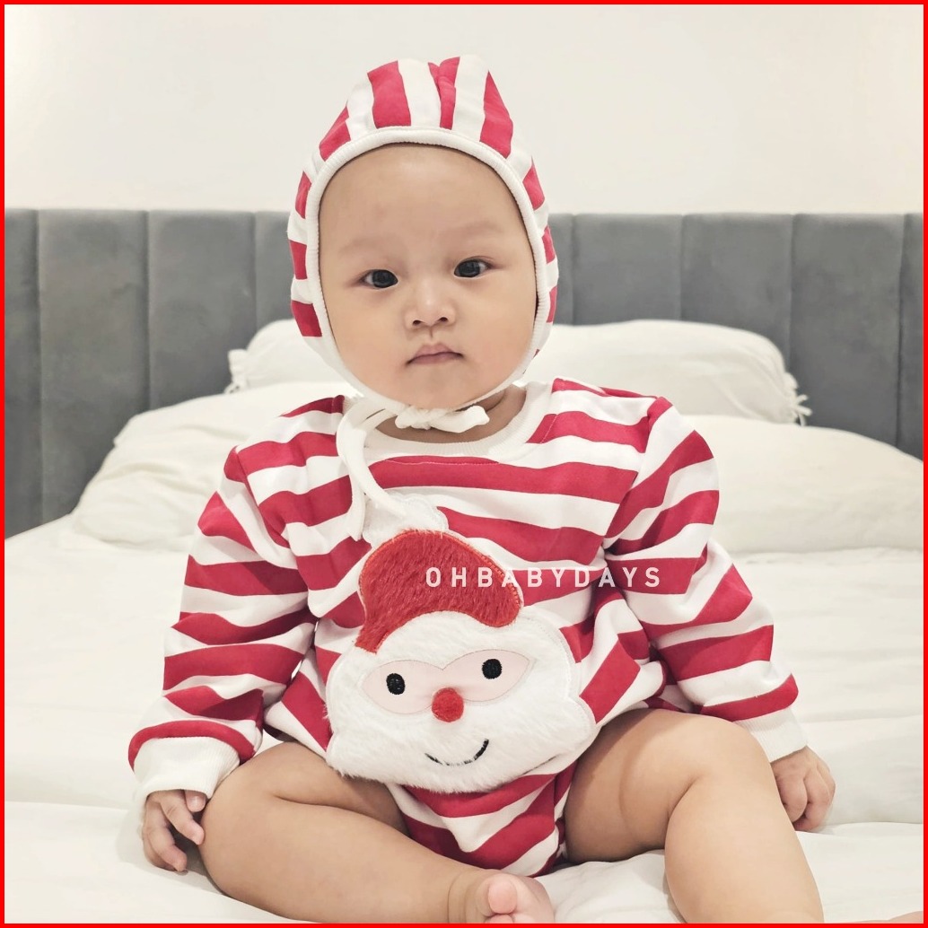 Ohbabydays Baju Anak Unisex Christmas Romper Baju Bayi Christmas Jumper Include Bonnet