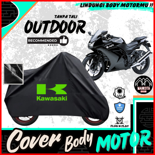 Cover Motor Sarung Pelindung Mantel Motor Bahan Parasut Waterproof 100 Anti Air Logo Kawasaki Ninja R 250
