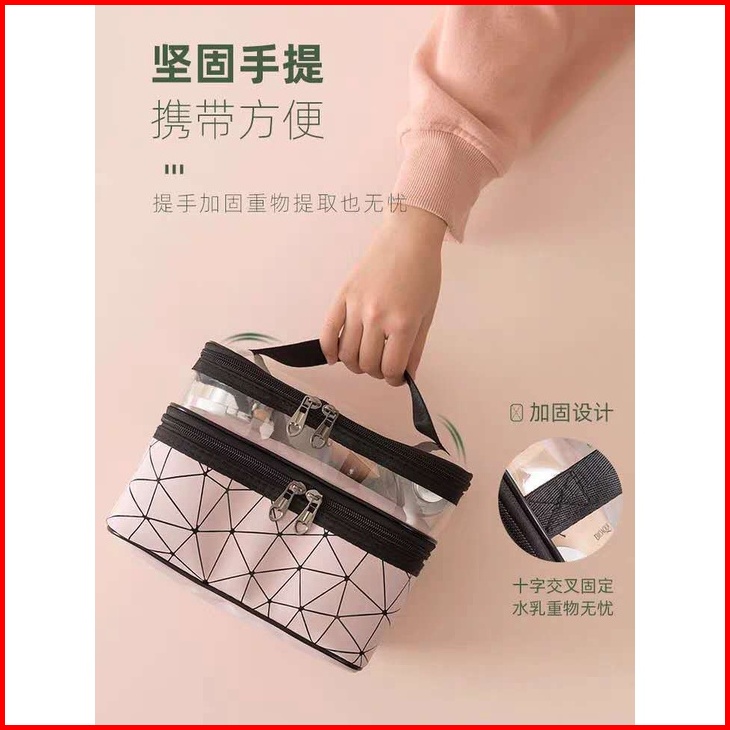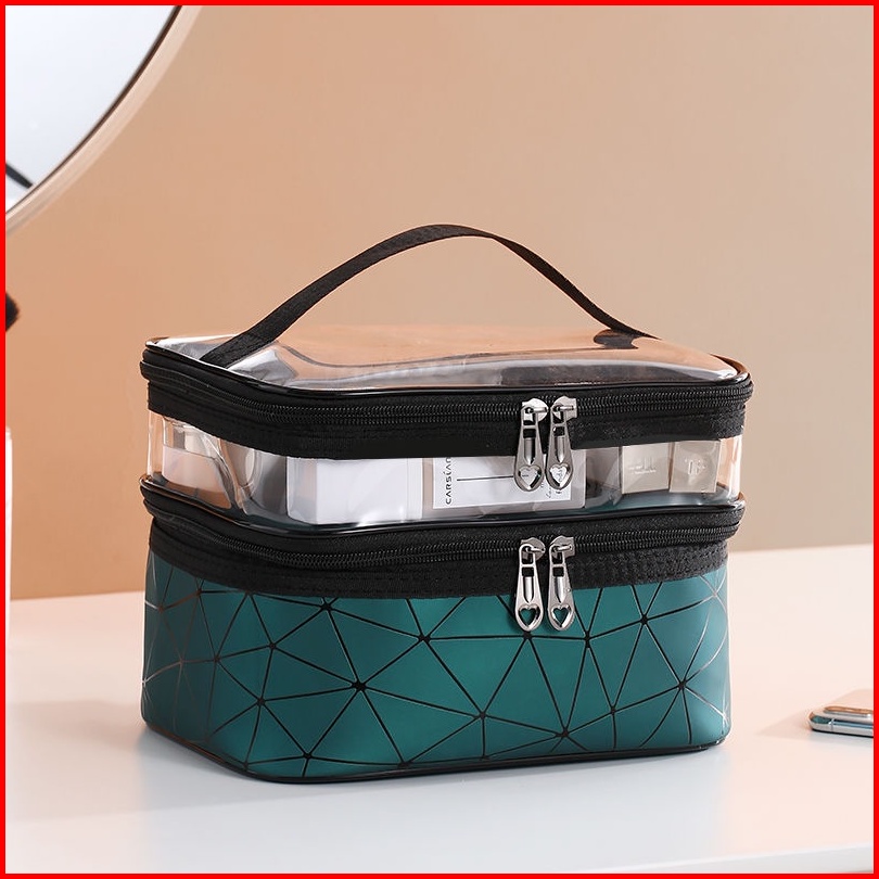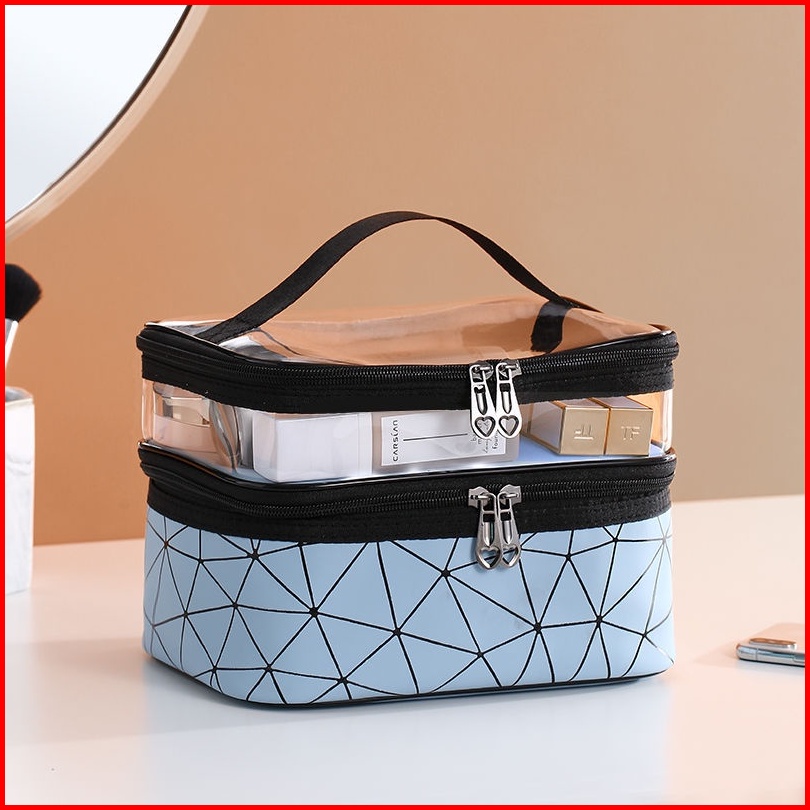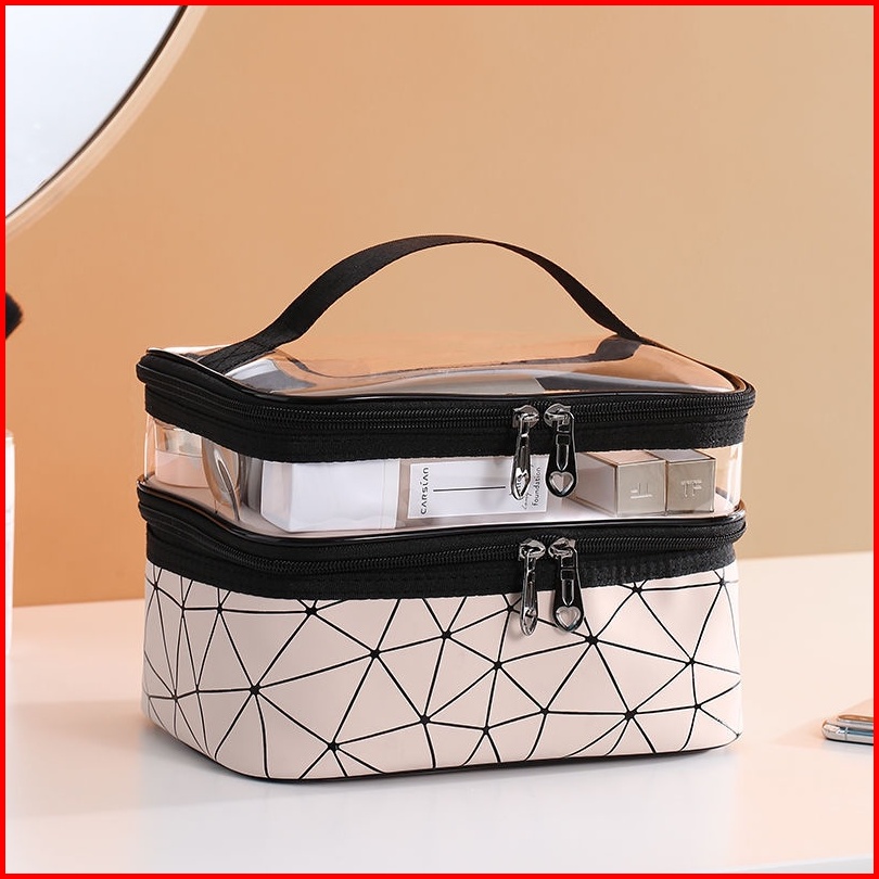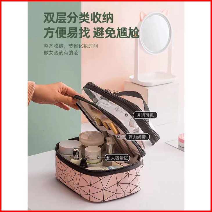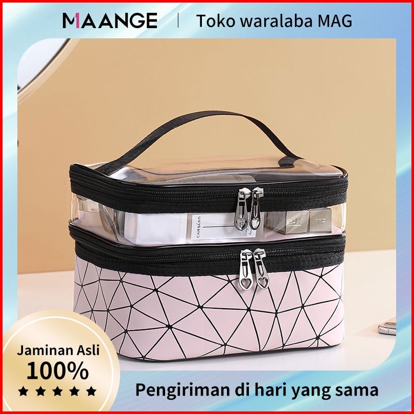 Maange Tas Kosmetik Dua Lapis Model Baru Kotak Kosmetik Wanita Portabel Penata Rias Wanita Multifungsi Penyimpanan Pakai