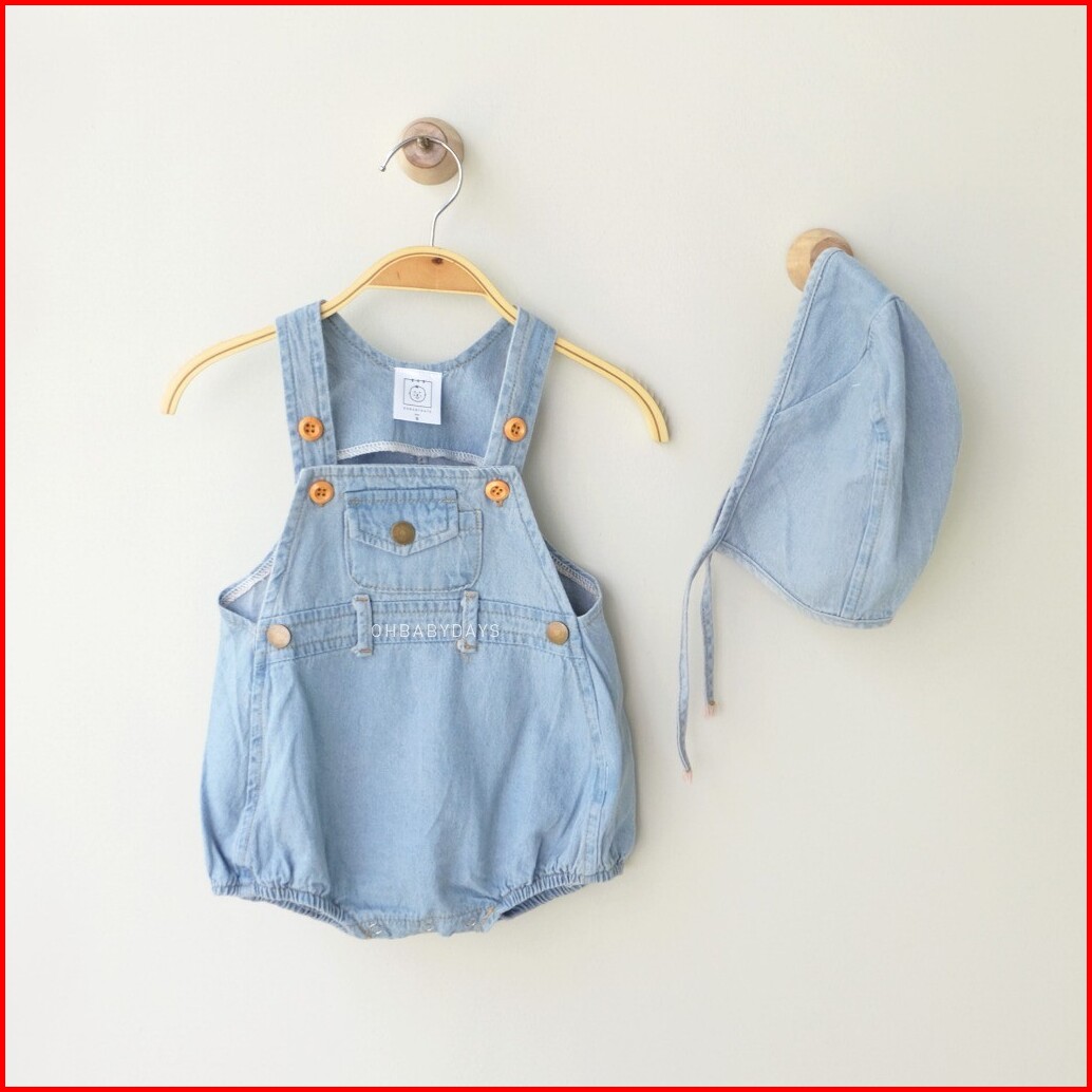 Ohbabydays Jumper Romper Bayi Overall Denim Romper Overall Bonnet