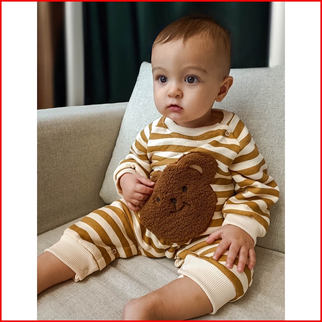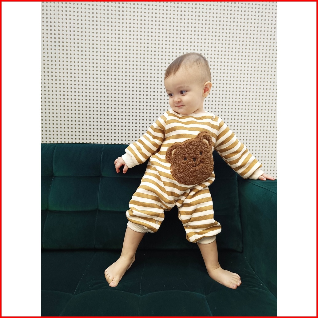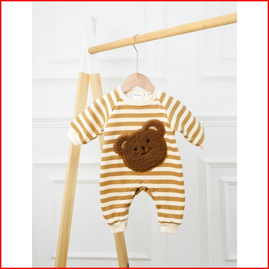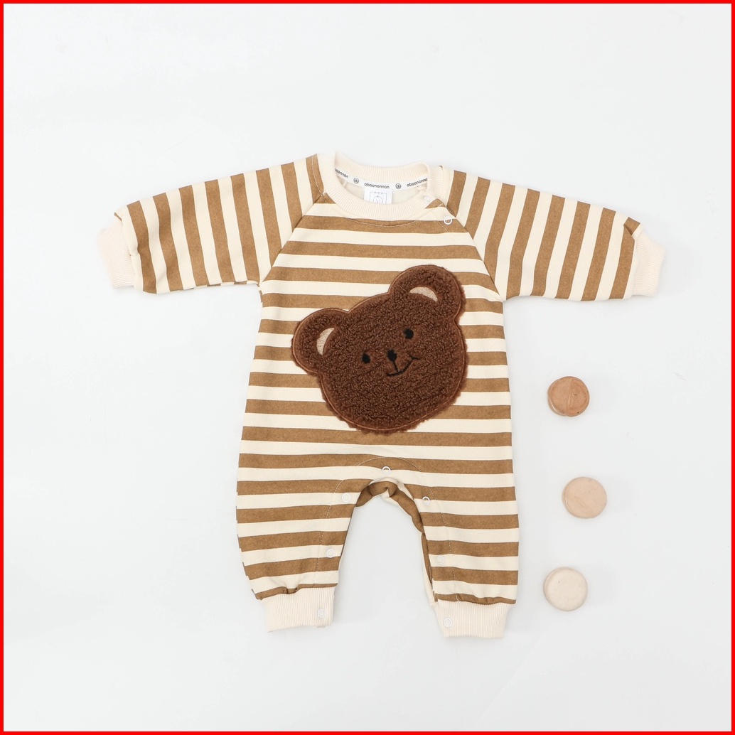 Ohbabydays Jumper Romper Bayi Fluffy Bear Stripes Romper