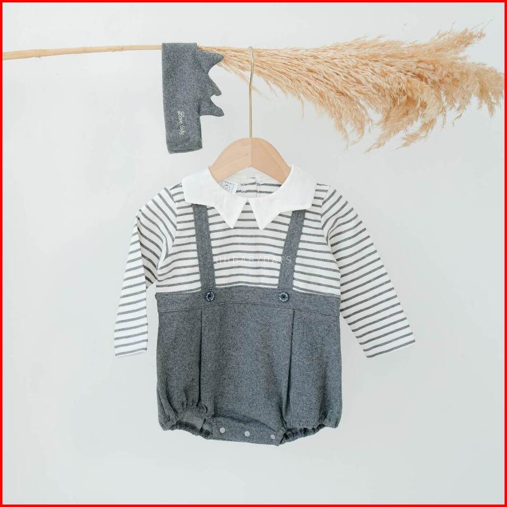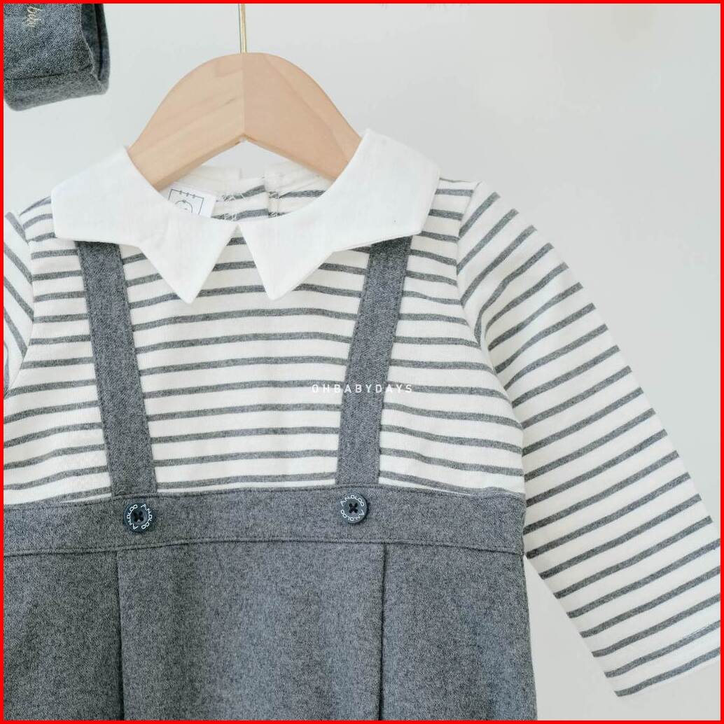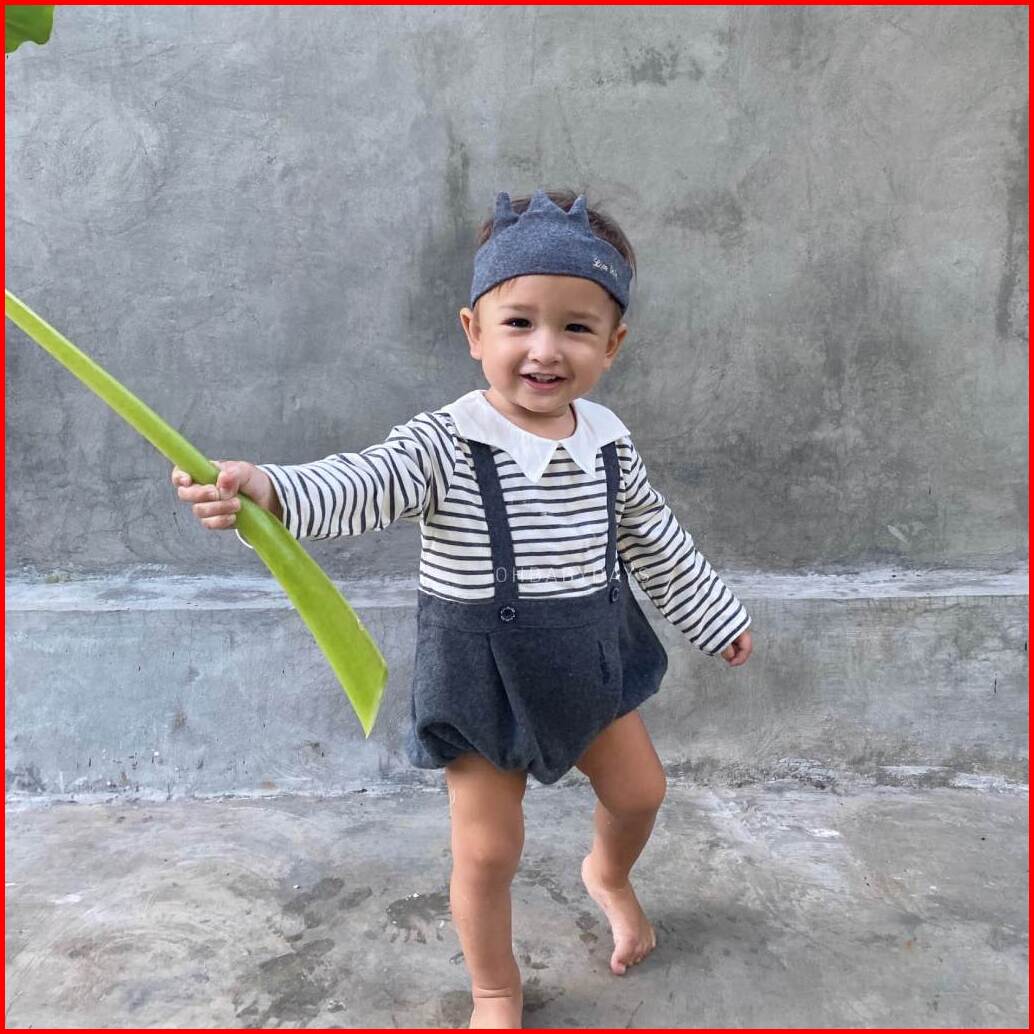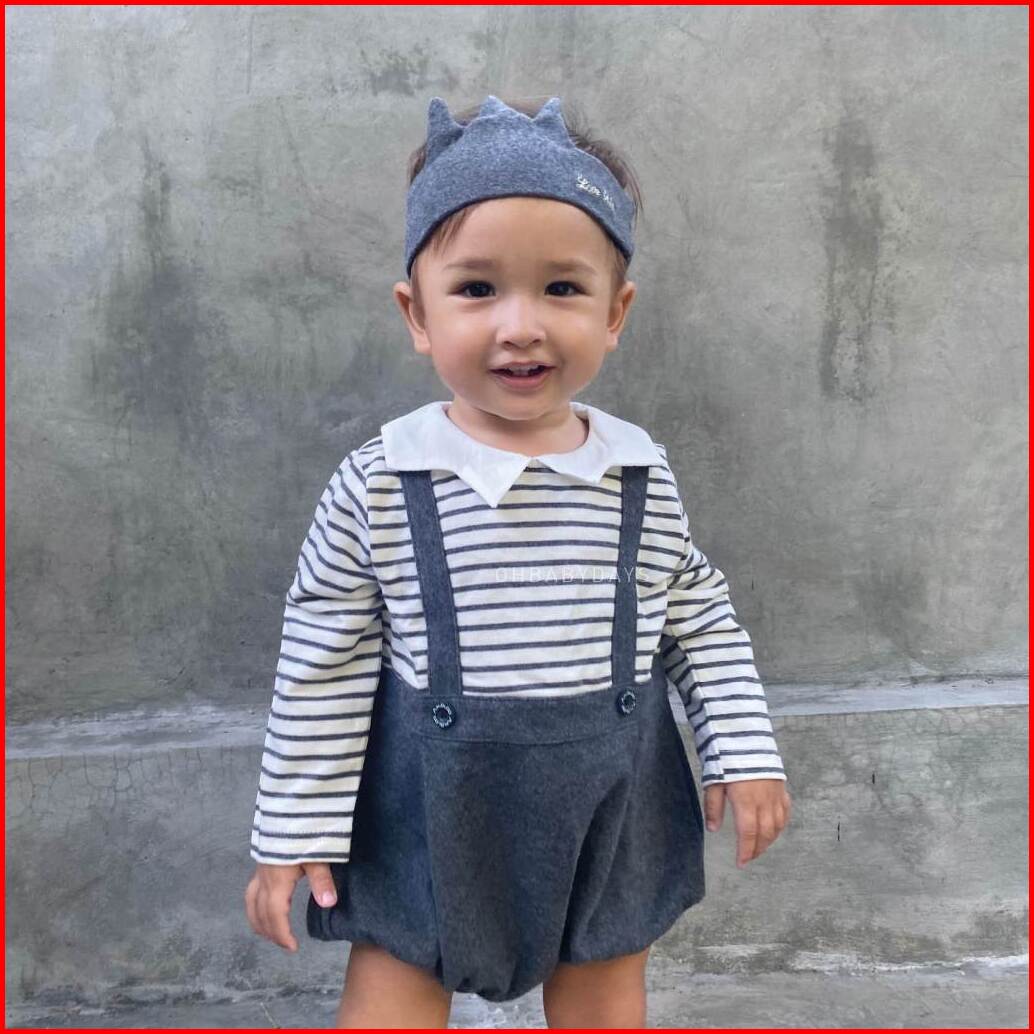 Ohbabydays Jumper Bayi Anak Laki Laki Prince Stripe Romper Crown Hat