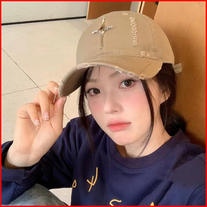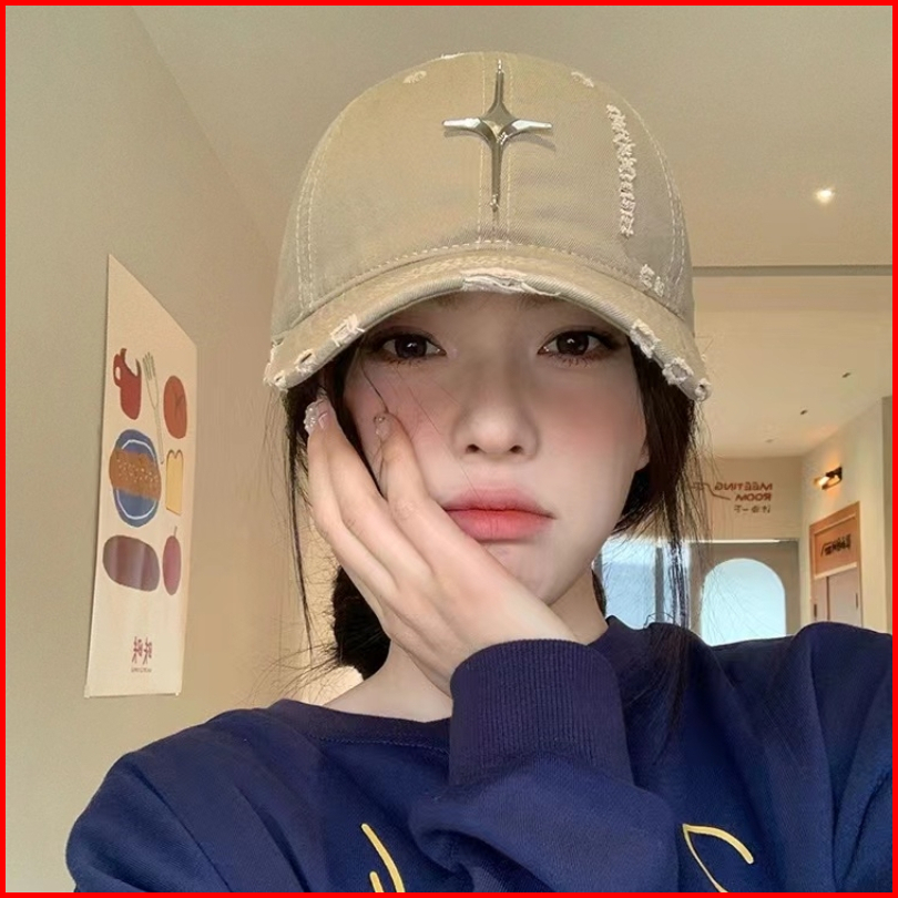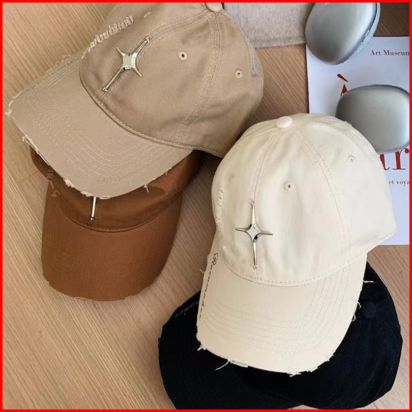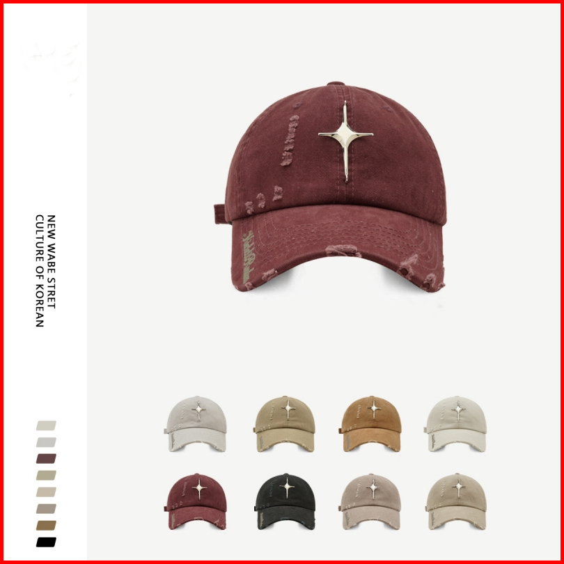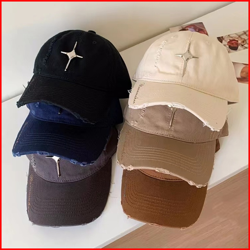 Bestprotagonist-314 Pria Wanita Topi Baseball Hat Model Sobek Wash Denim Distro Plus Aksesoris Depan Top Pure Lembut
