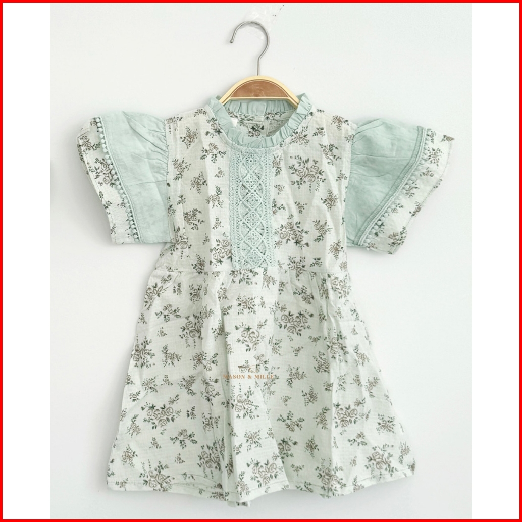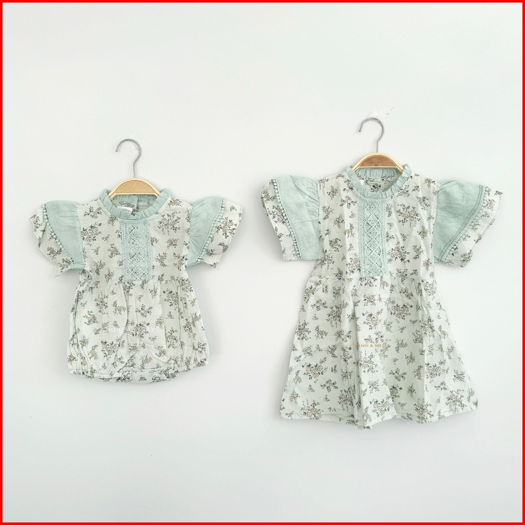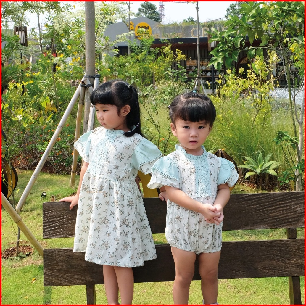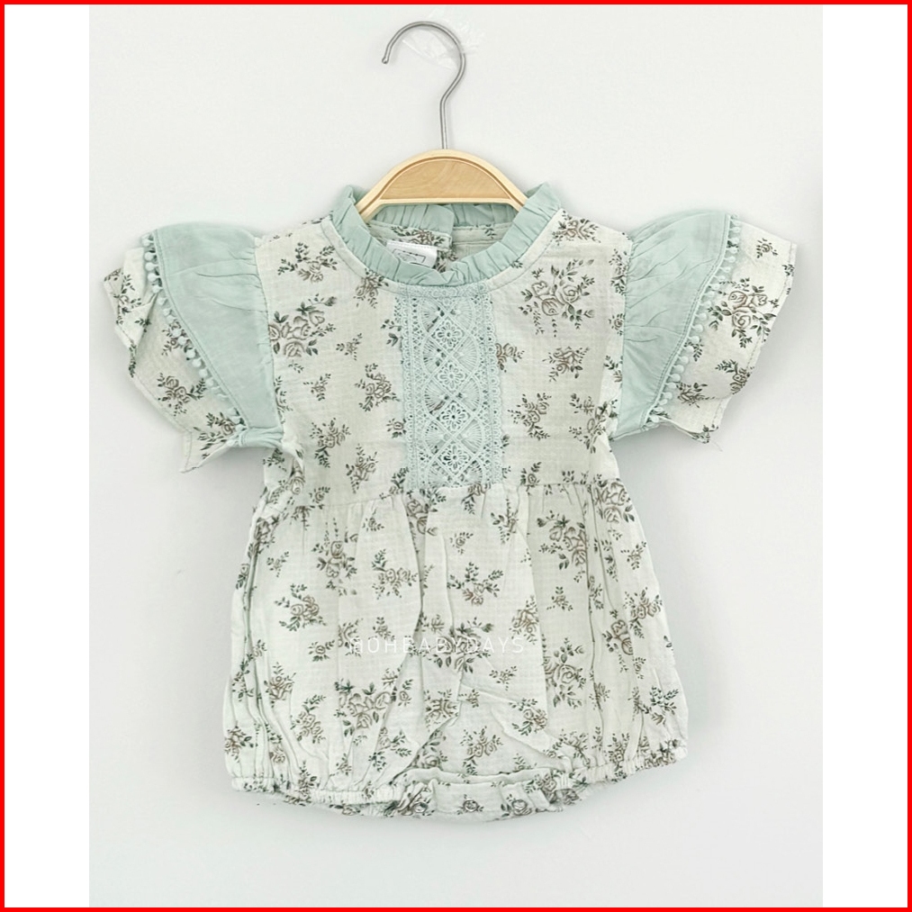 Ohbabydays Ohbabydays X Mason Mille Baju Romper Dress Anak Bayi Perempuan Eloise Flower Green