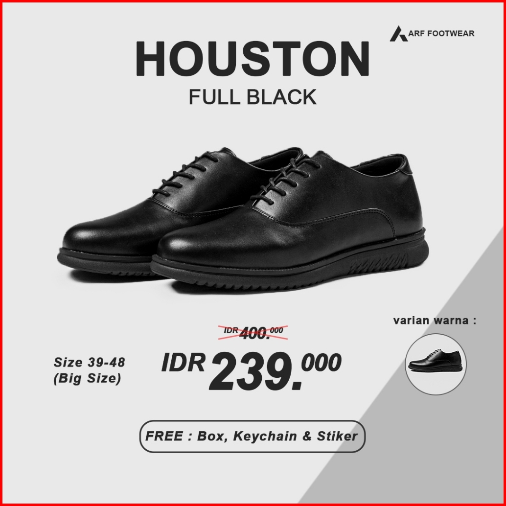 Arf Houston Fullblack Sepatu Formal Kulit Pantofel Oxford Hitam Pria Wanita Kerja Kantor Kondangan Casual Pantopel Fanto