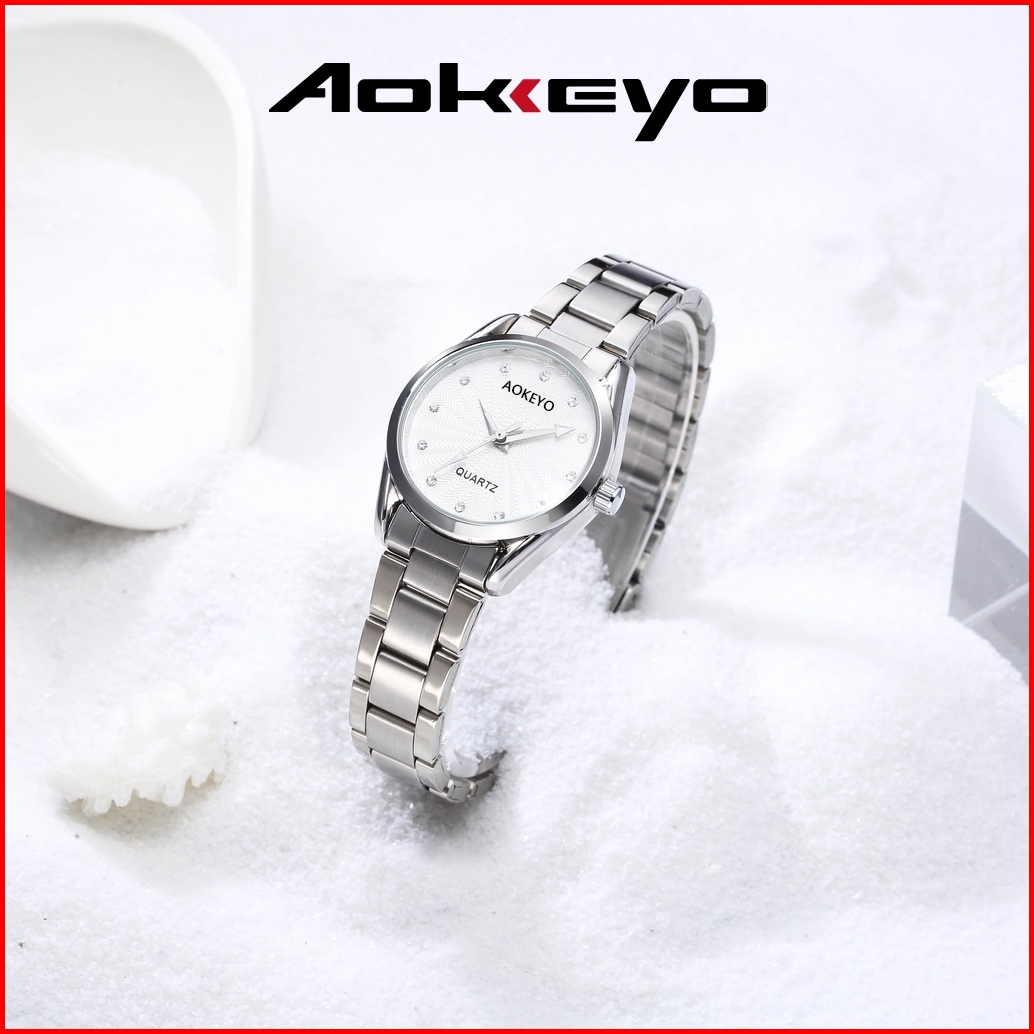 Aokeyo W579 Jam Tangan Wanita Original Tahan Air Santai Mode Stainless Steel Jam Tangan Cewek Free Box Kartu