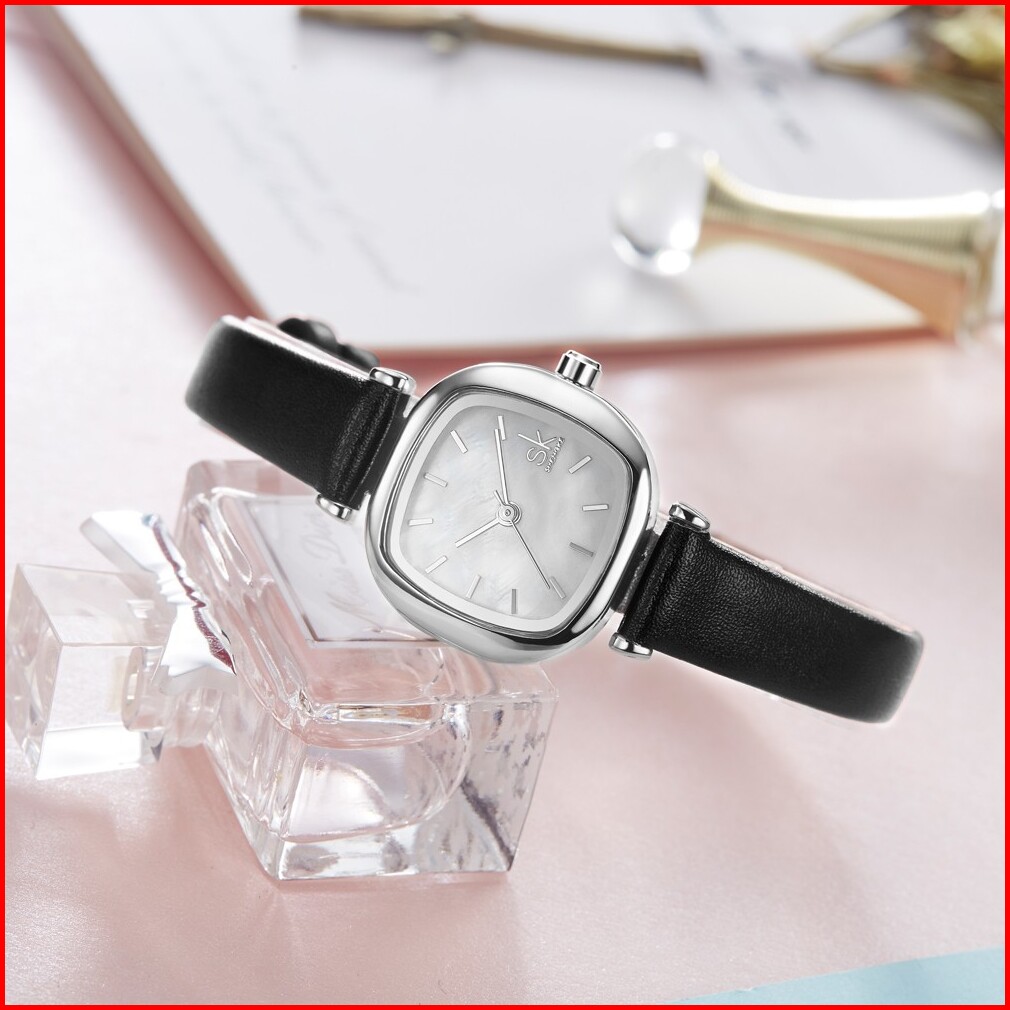 Shengke 8052 Jam Tangan Wanita Analog Tali Kulit Pearl Shell Korean Design Currenos