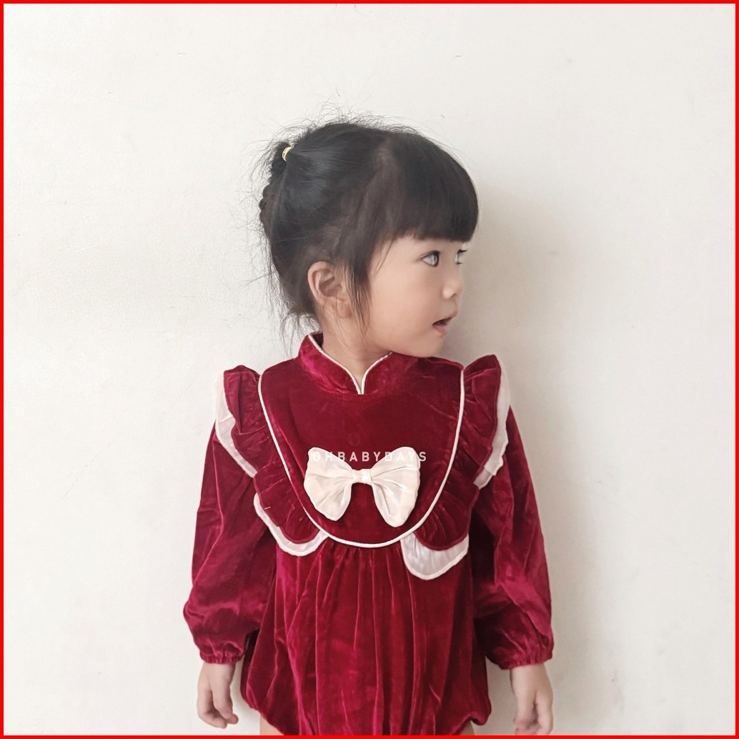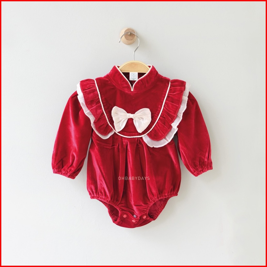 Ohbabydays Jumper Romper Bayi Bow Velvet Romper