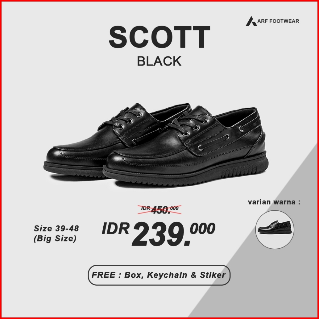 Arf Scott Black Sepatu Formal Kulit Pantofel Hitam Pria Wanita Kerja Kantor Kondangan Casual Original Shoes