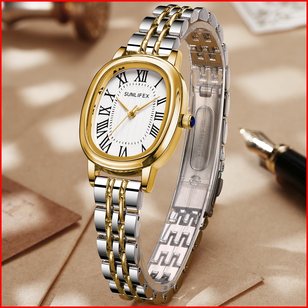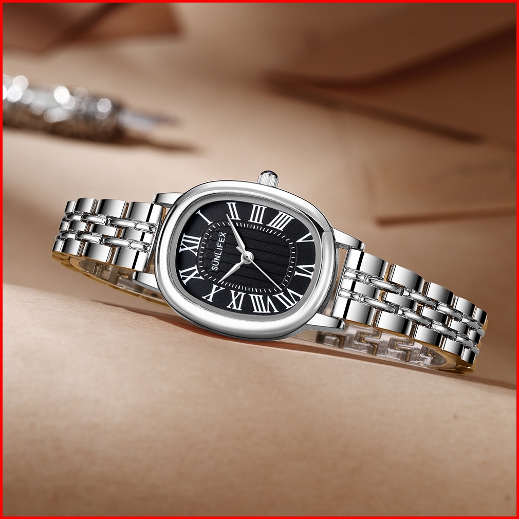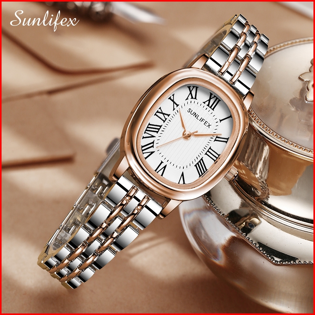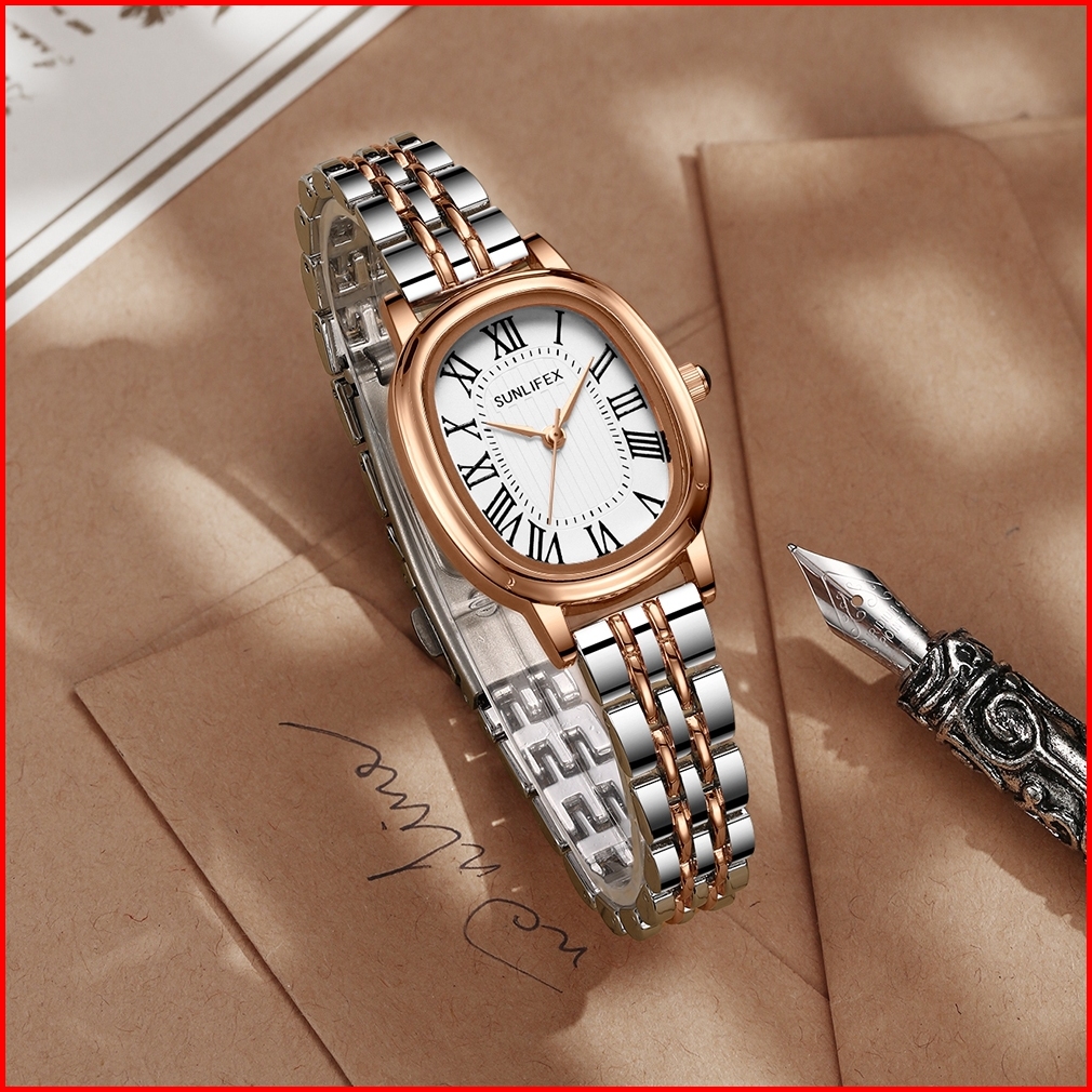 Sunlifex Jam Tangan Wanita Analog Original Korean Tali Rantai Oval Paduan Fashion Jam Tangan Cewek 5997