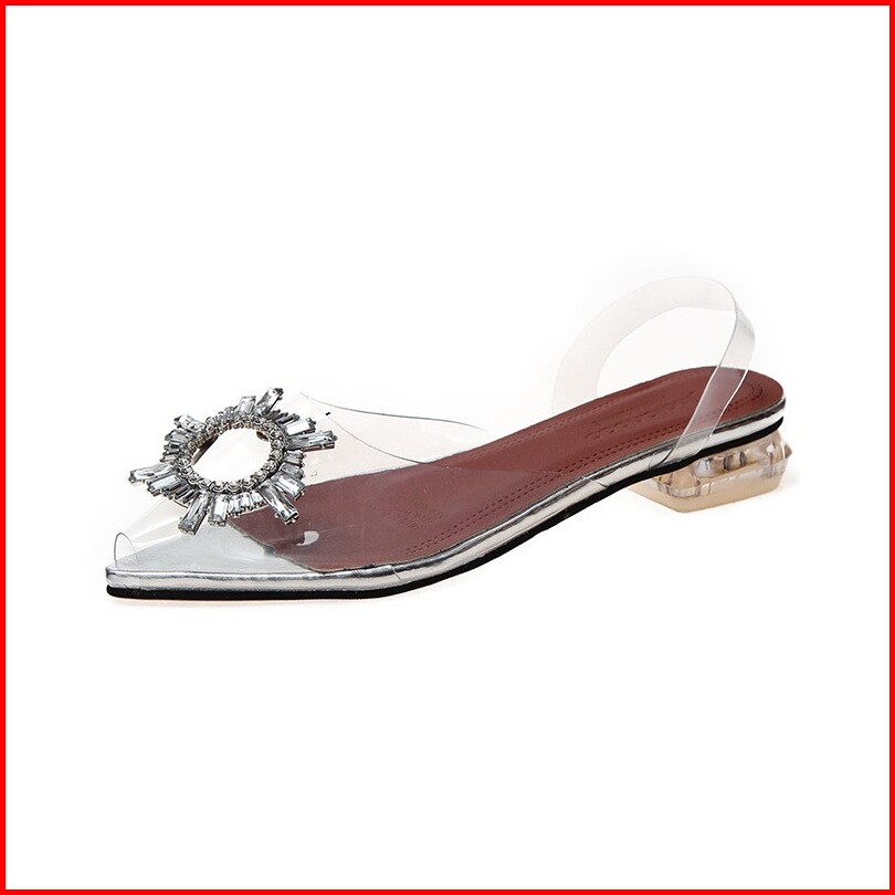 Women Rhinestone Decor Clear Strap Point Toe Slingback Flats 5049 Size 35-40