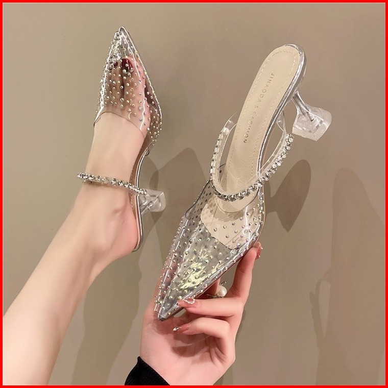 Findal Sepatu Hak Kaca Wanita Sepatu Heels Transparan Import High Heels Bening Elegan Hi-058