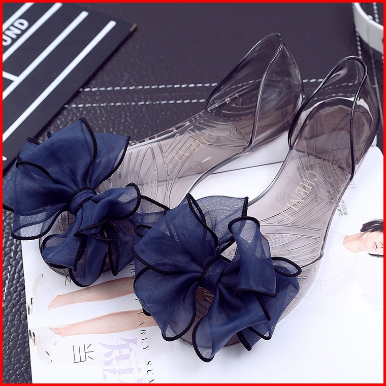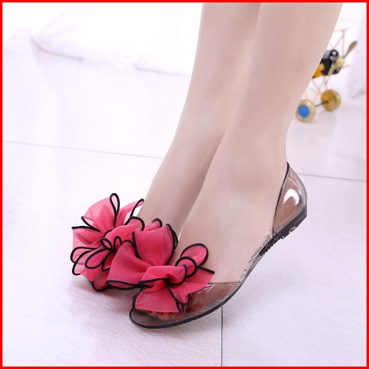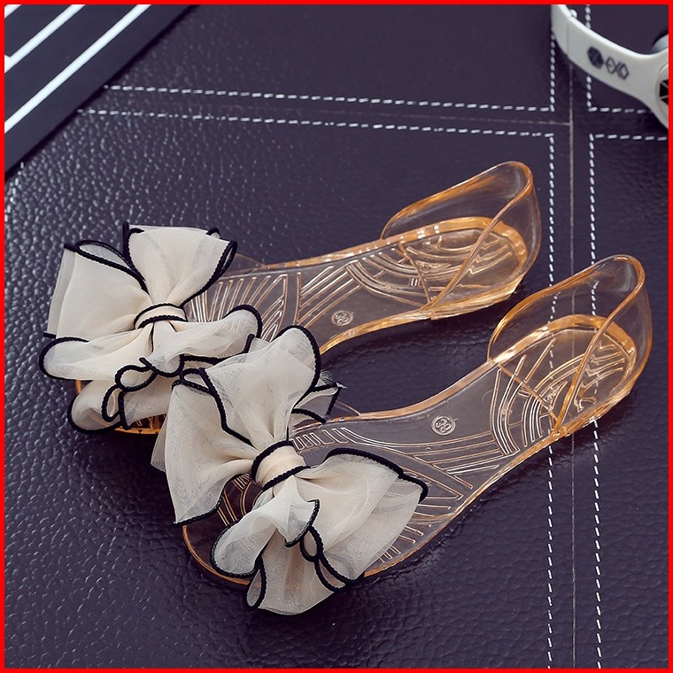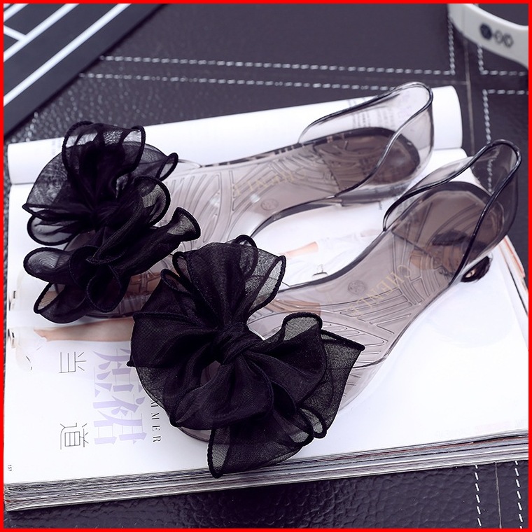 Hotank Ready Sandal Wanita Sepatu Jelly Sepatu Renda Bunga Kaca Sandal Kaca Transparan Sepatu Datar Manis Sepatu Jelly M