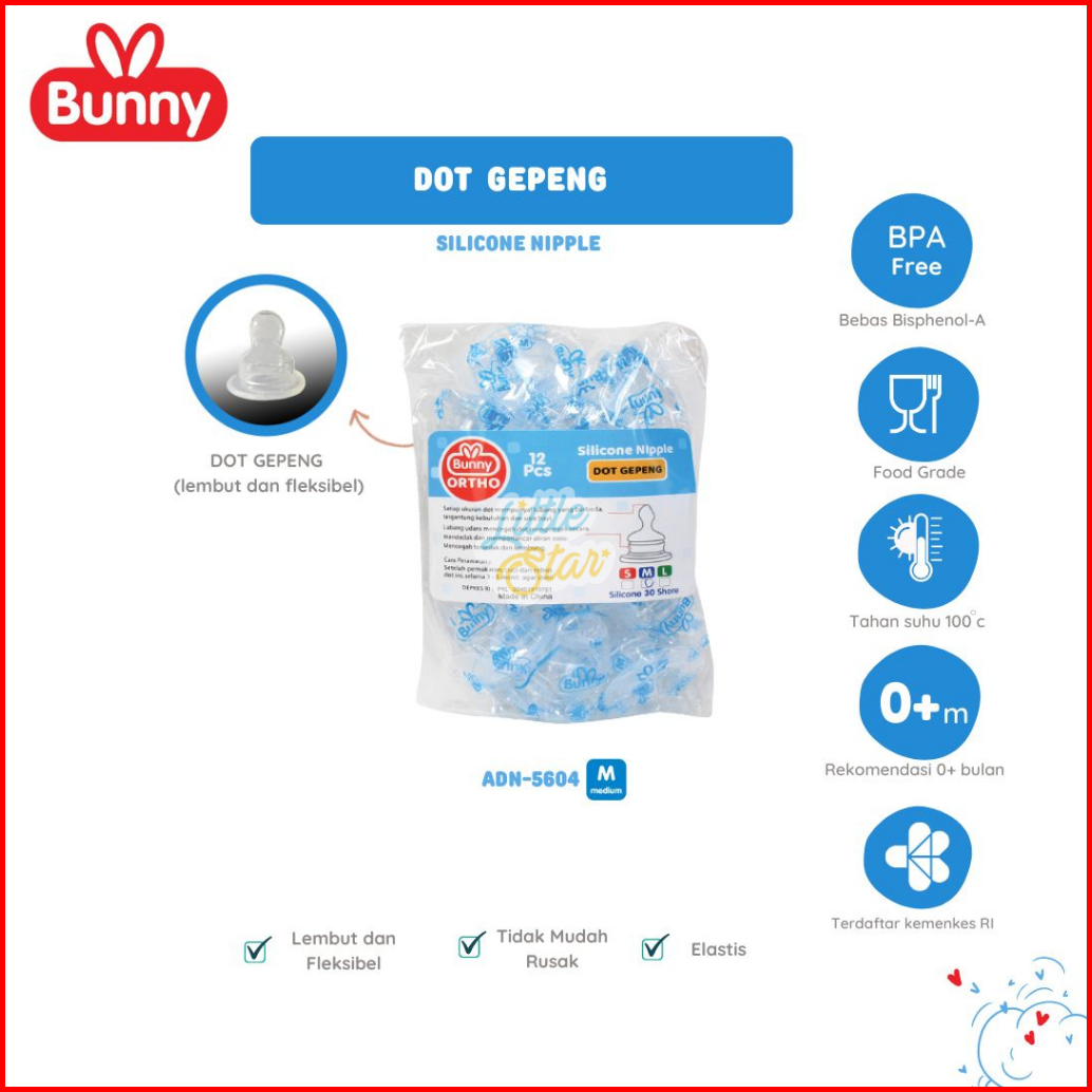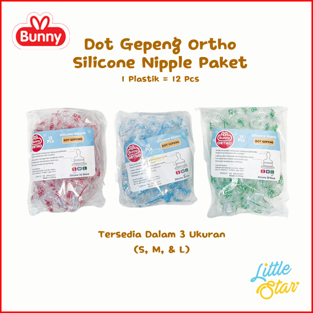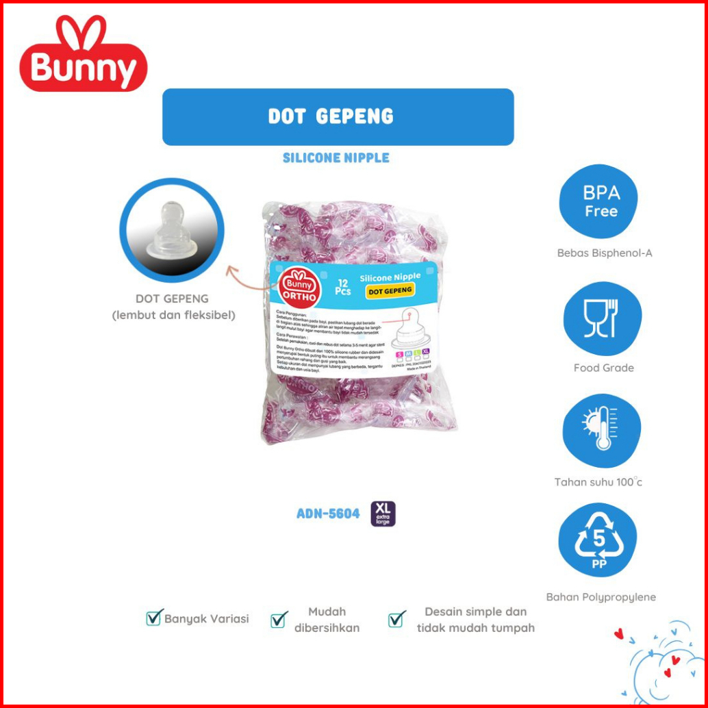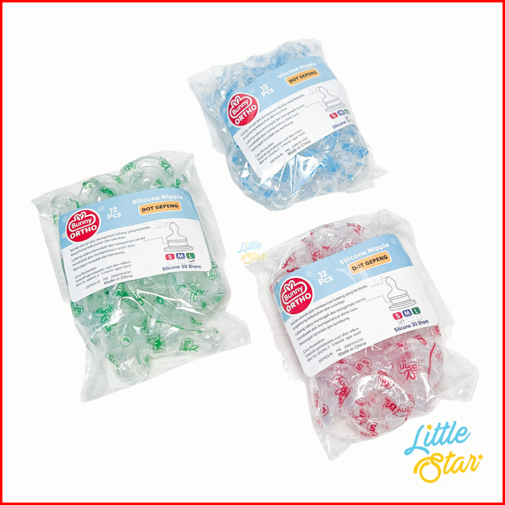Lusty Bunny Dot Gepeng Silicone Nipple Karet Orthodontic Paket Isi 12