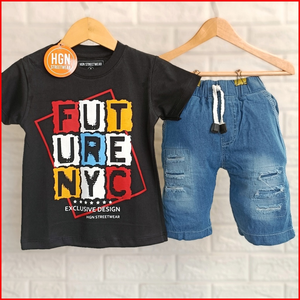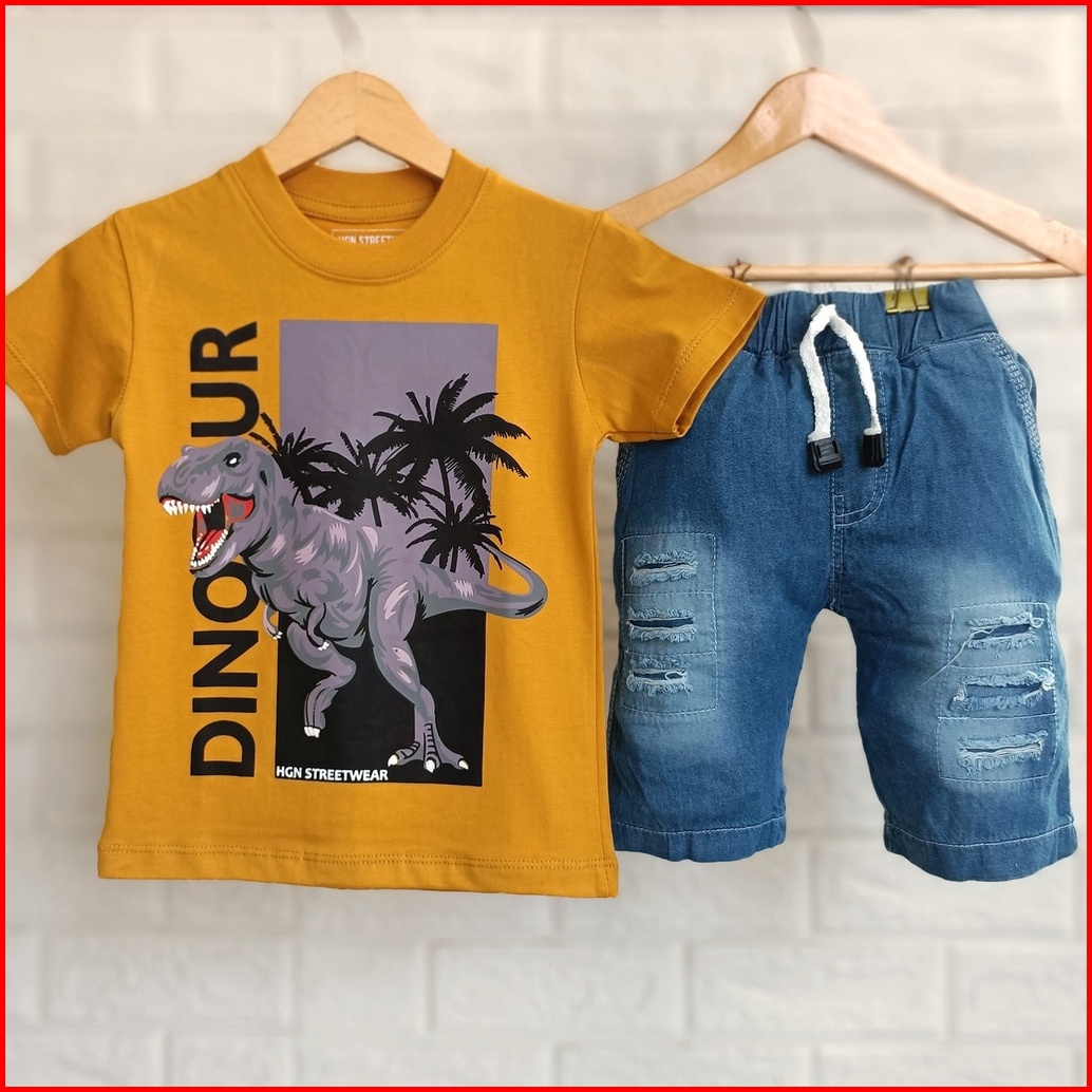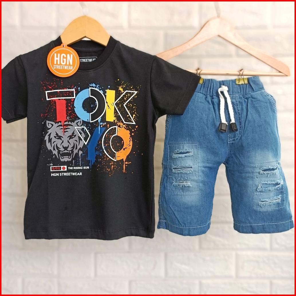 Setelan Anak Cowok 7-9 Tahun Baju Anak Laki Laki Celana Pendek Anak Denim Baju Anak Cowok Hgn Keren