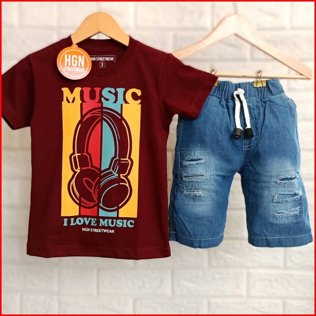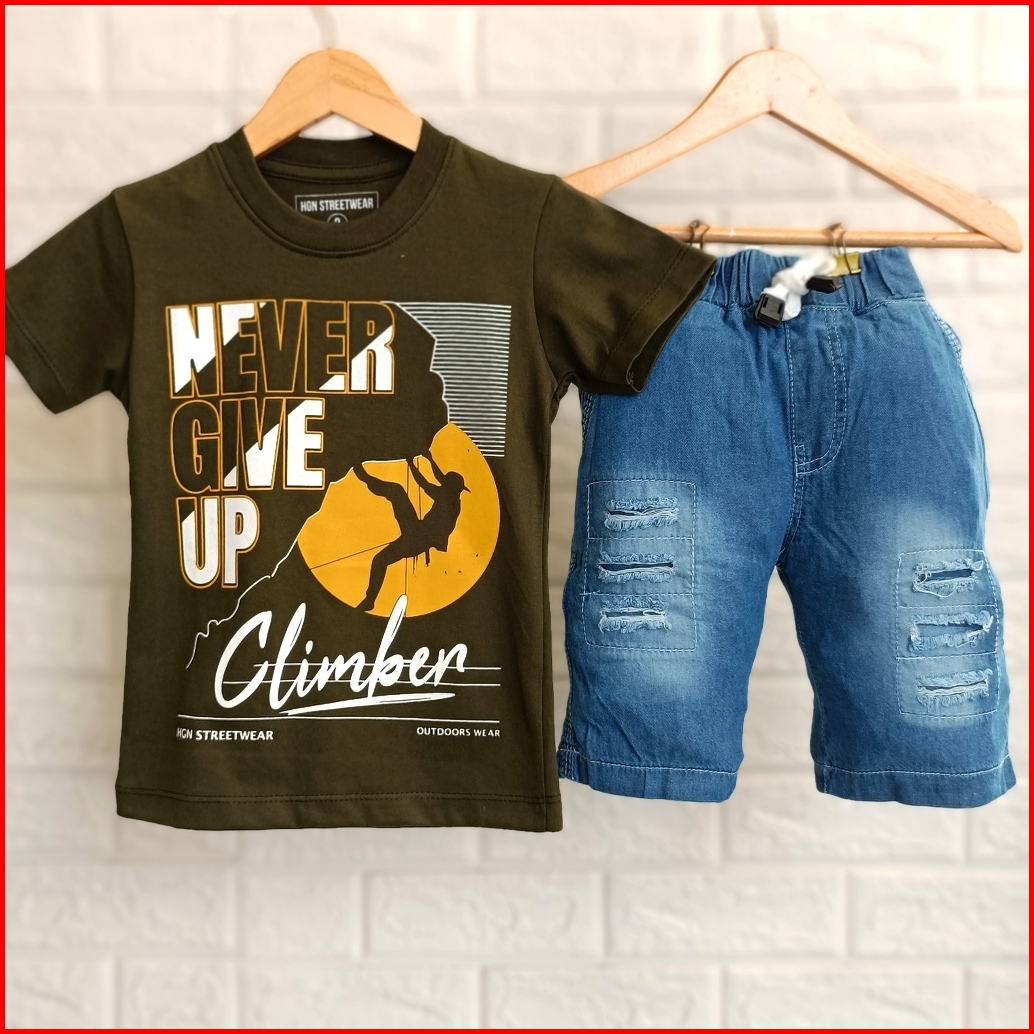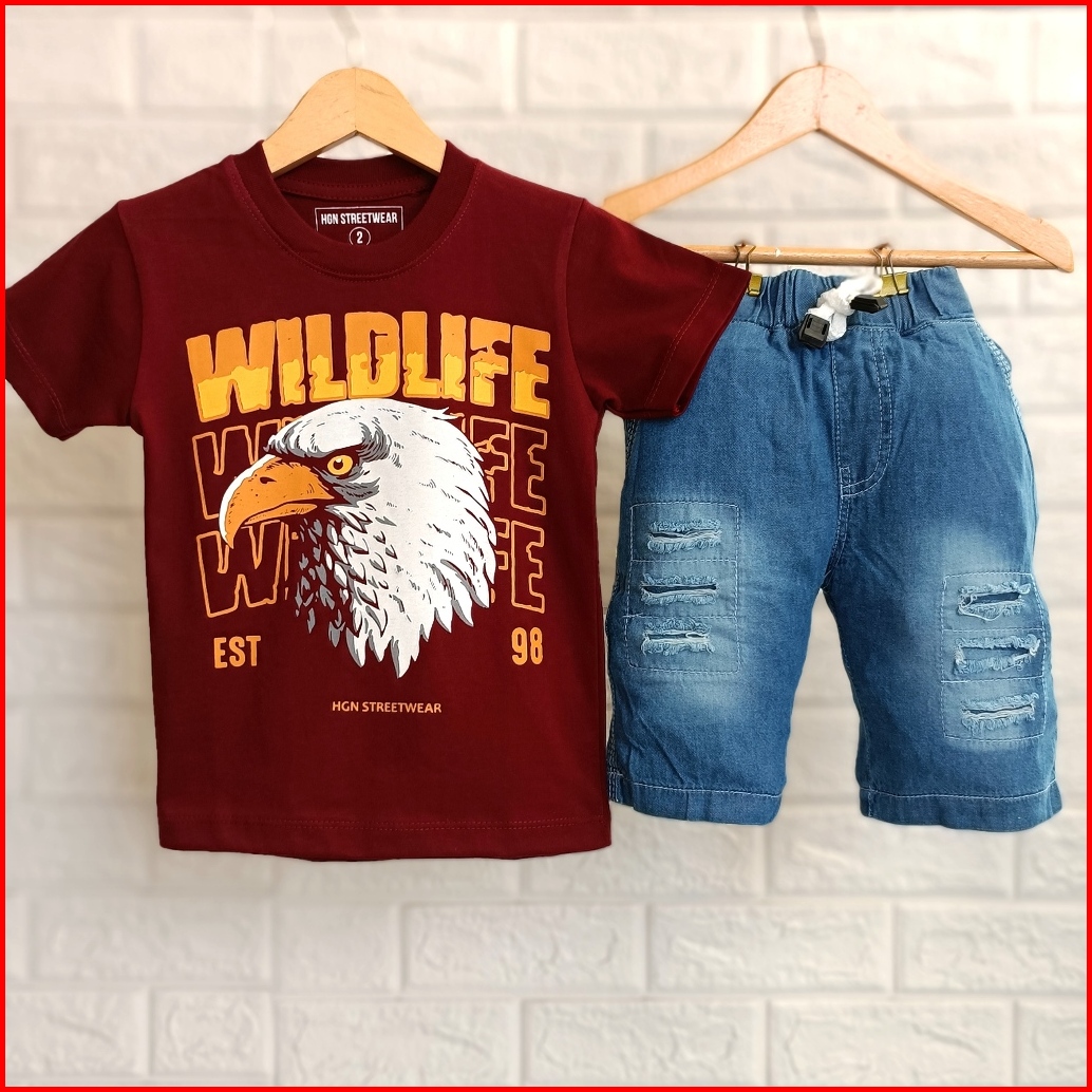 Setelan Anak Cowok 7-9 Tahun Baju Anak Laki Laki Celana Pendek Anak Denim Baju Anak Cowok Hgn Keren