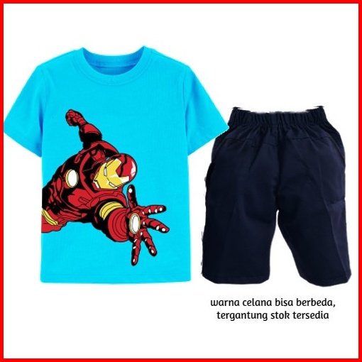 Setelan Anak Laki Laki Superhero Kpd Celana Pendek Anak Katun 1-9 Tahun Ironman Hulk Baju Anak Cowok