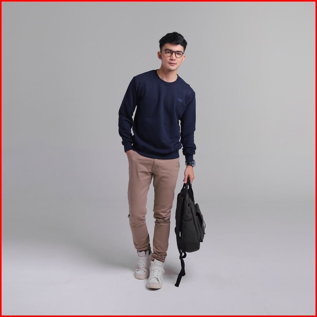 Ineat Mersey Sweatshirt Jacket Navy - Jaket Sweater Crewneck Unisex Biru Dongker