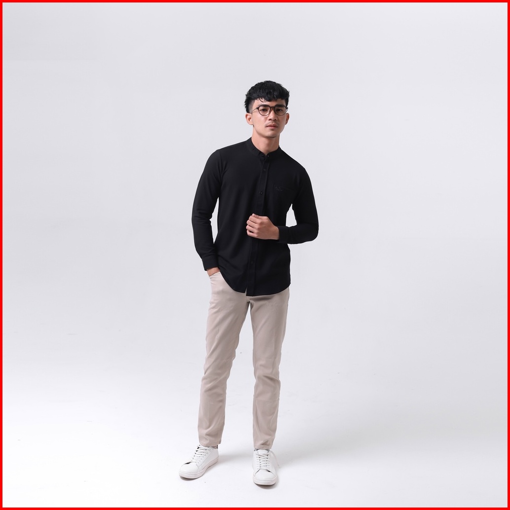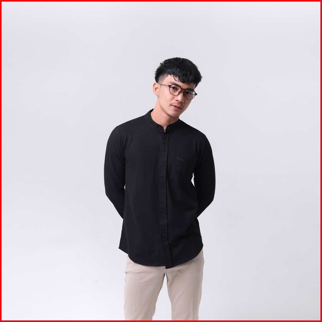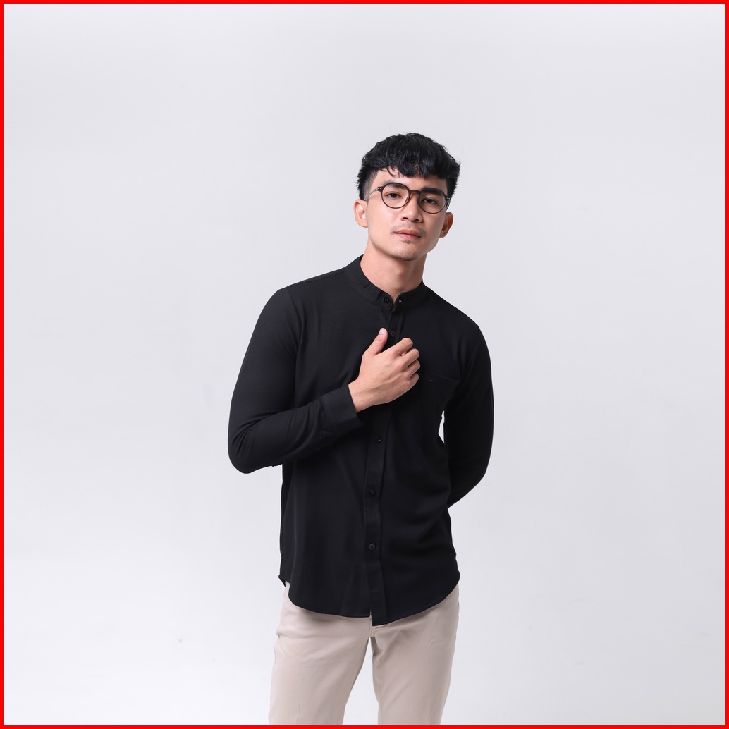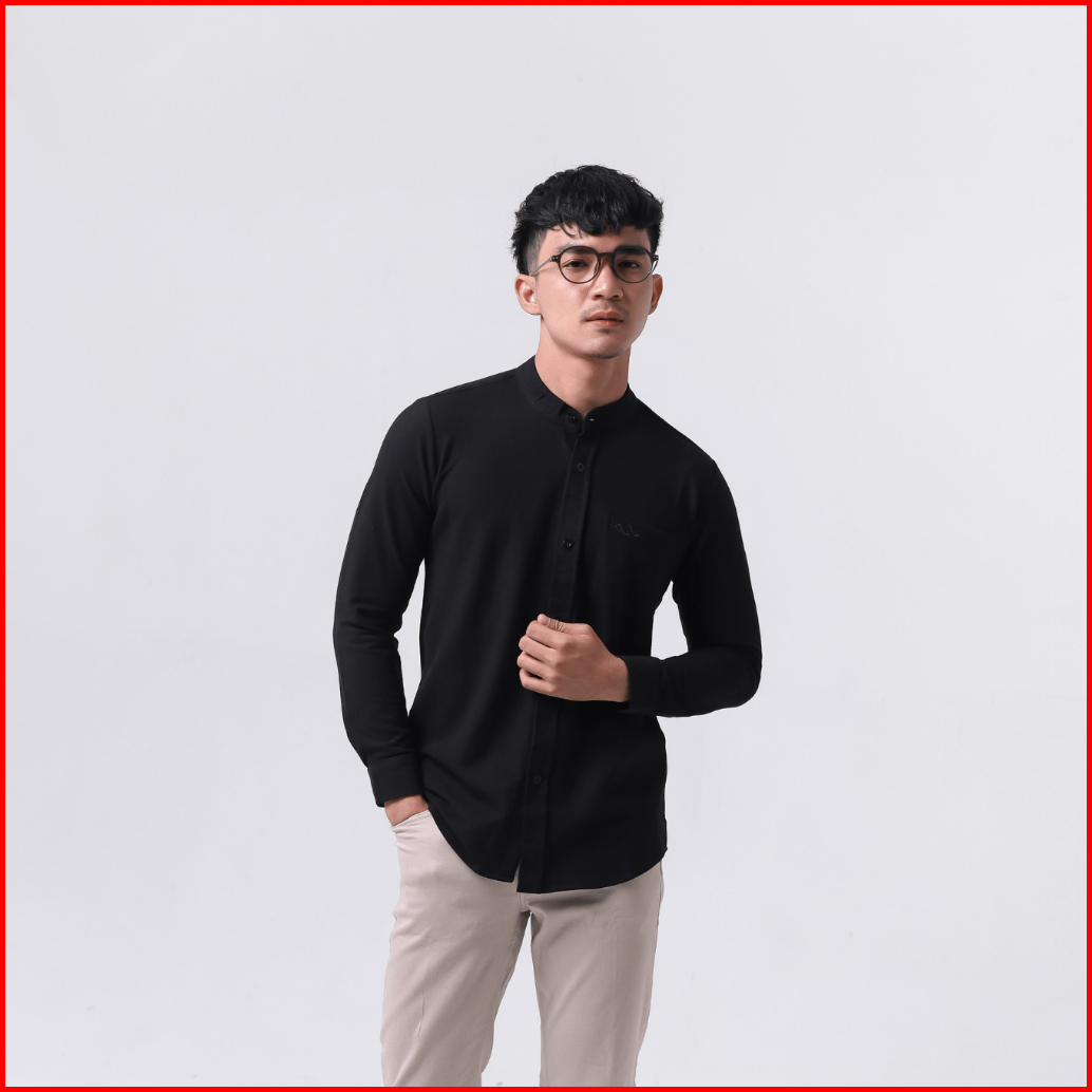 Ineat Kent Black Long Sleeve Slimfit Pique Shirt
