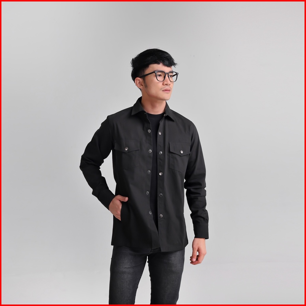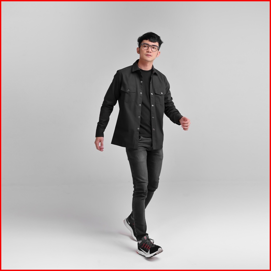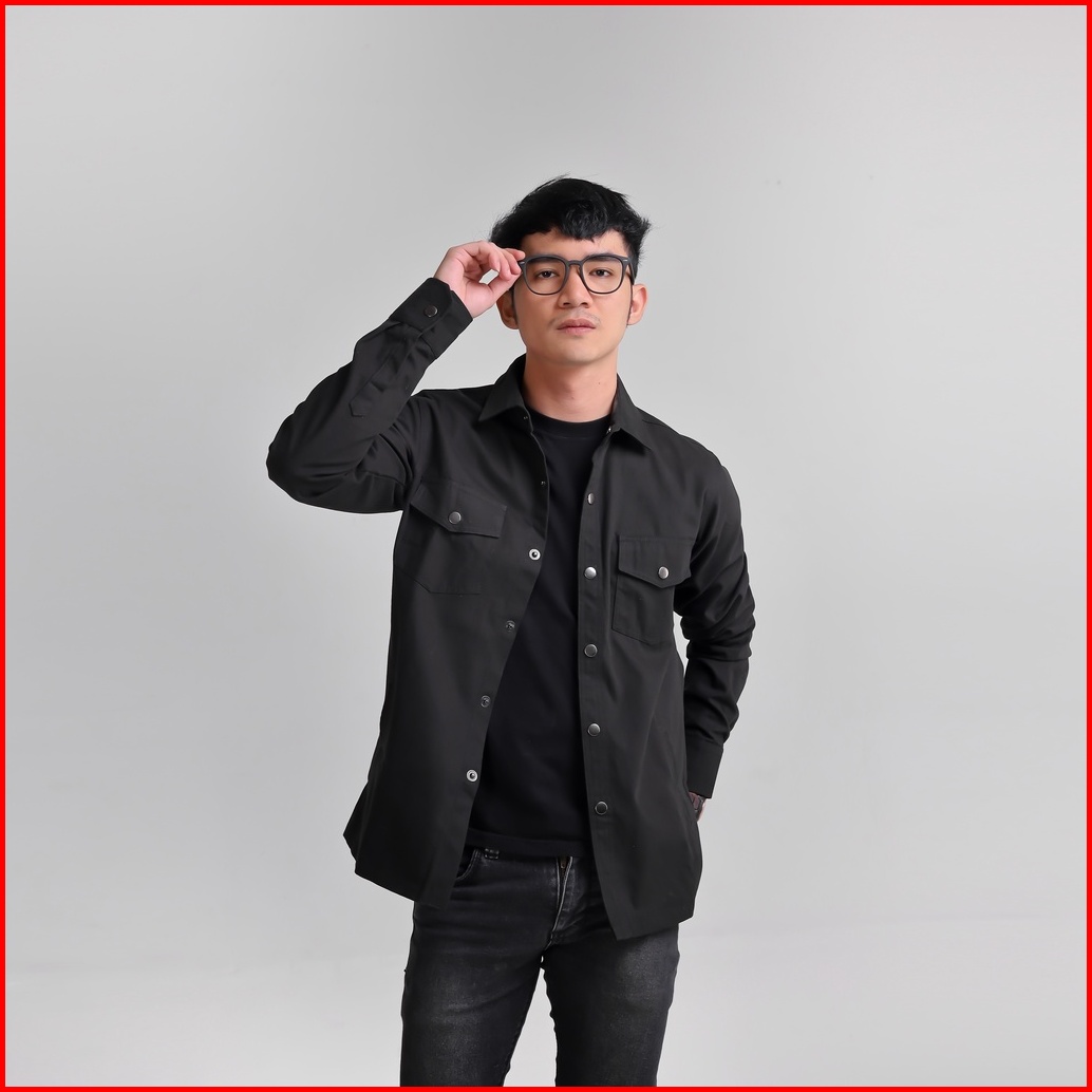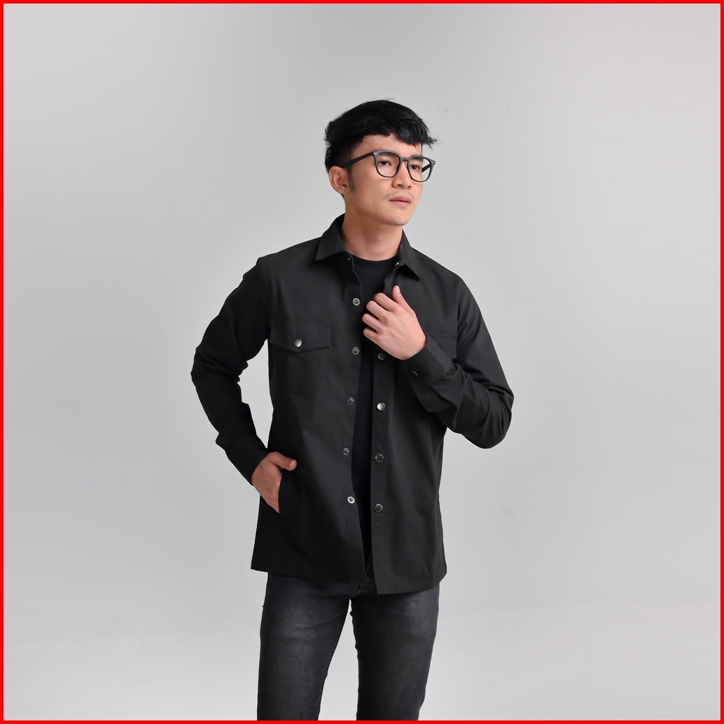 Ineat Myles Overshirt Jacket Black - Outer Jaket Pria