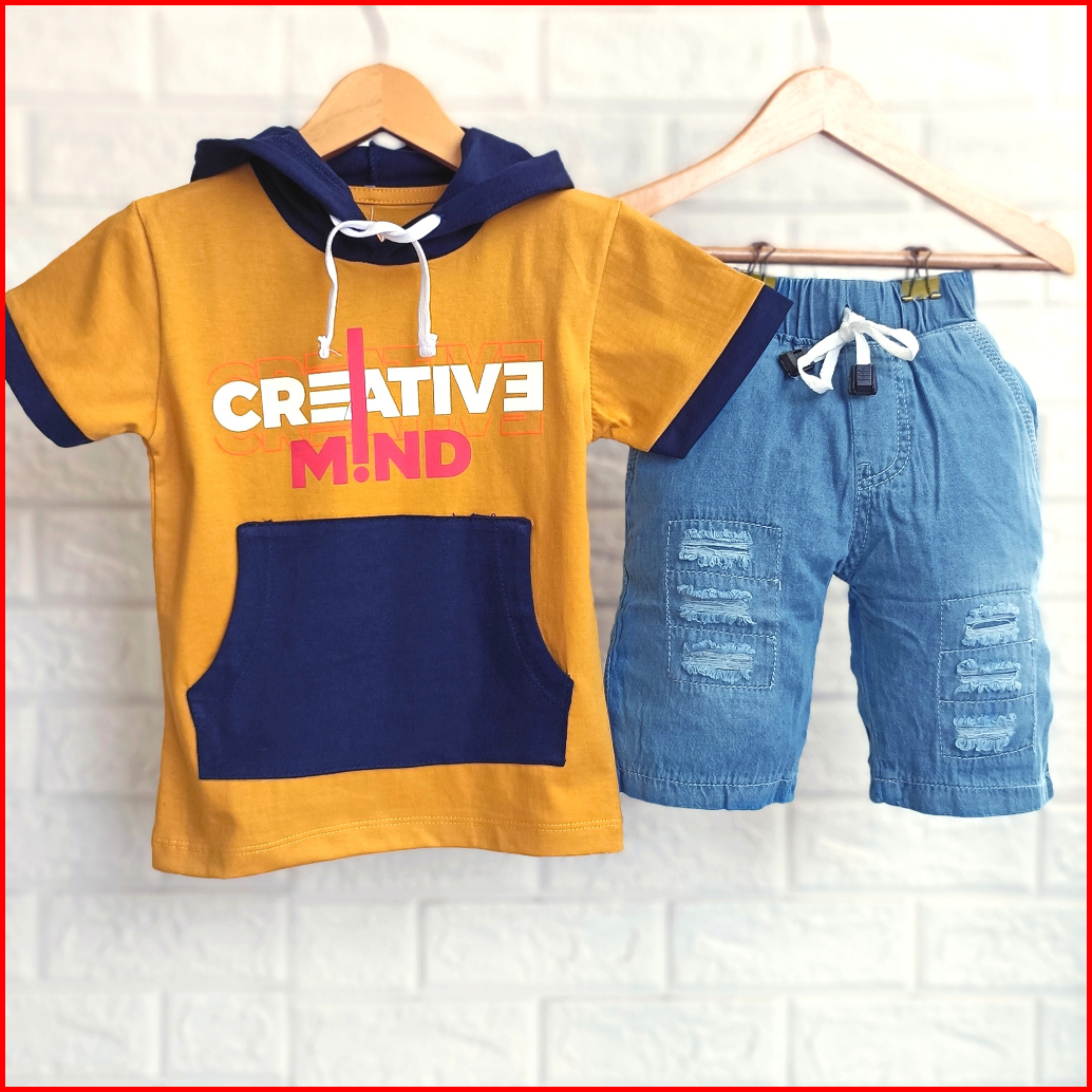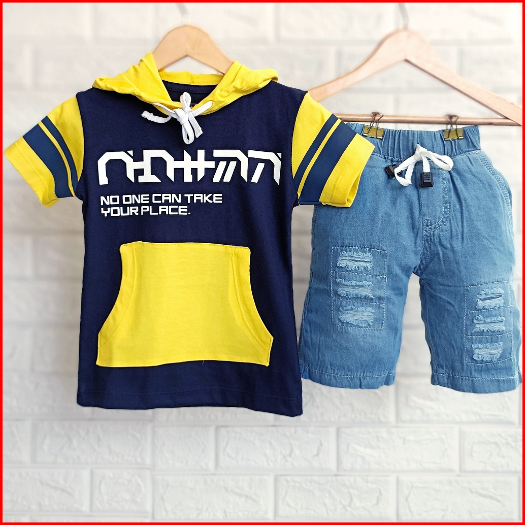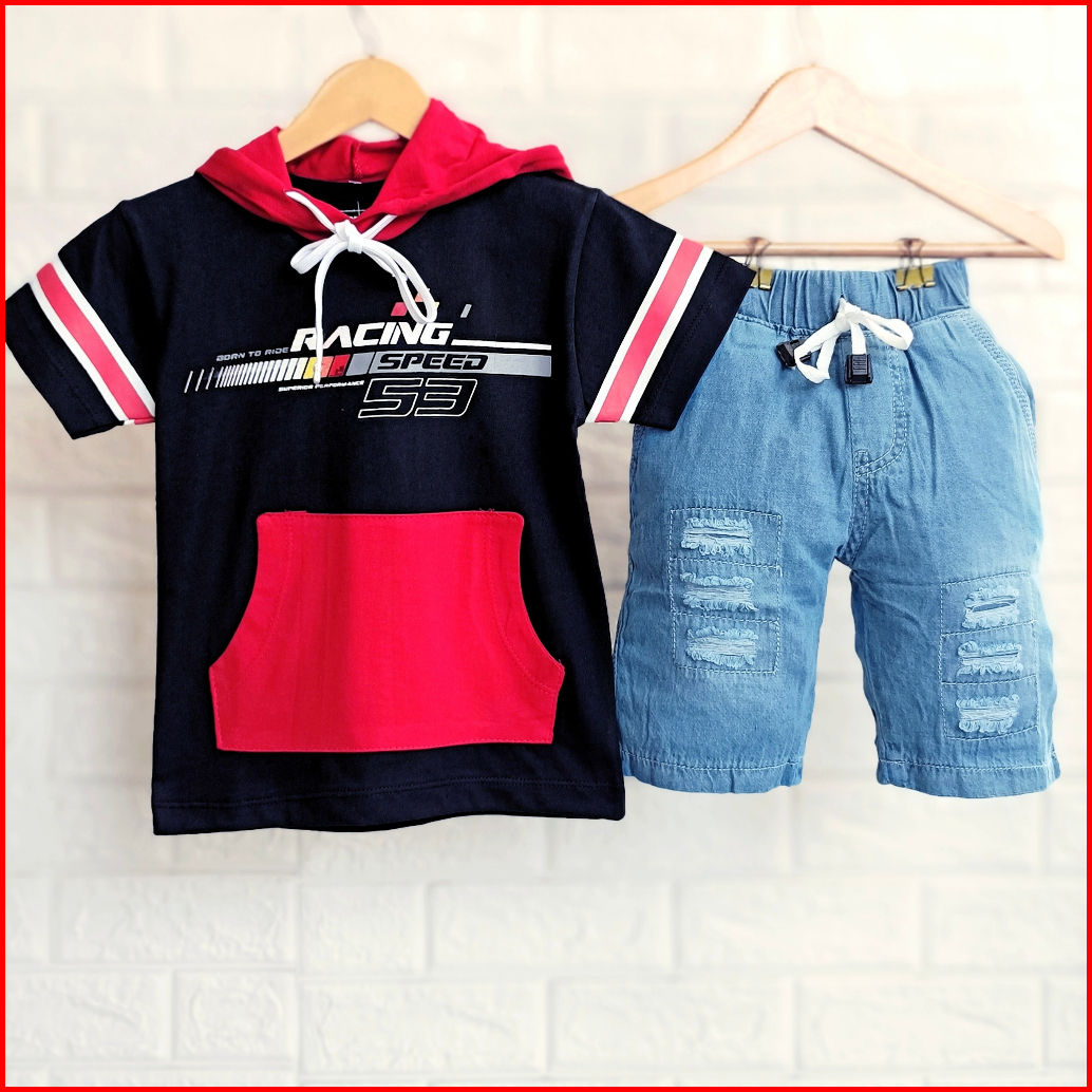 Setelan Anak Cowok Kekinian Baju Kupluk Anak Laki Laki Kaos Hoodie Anak Setelan Kupluk Anak Cowok Denim 1 - 9 Tahun