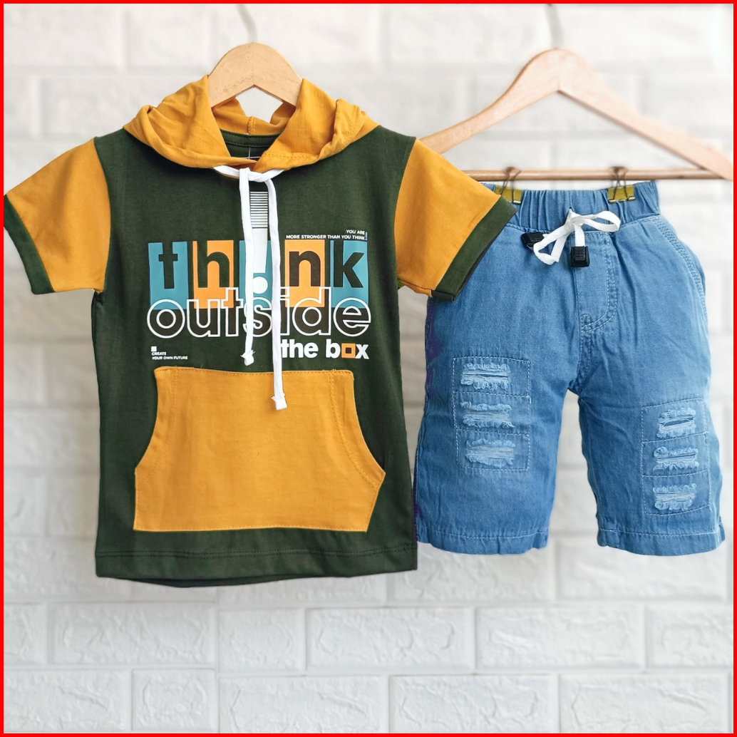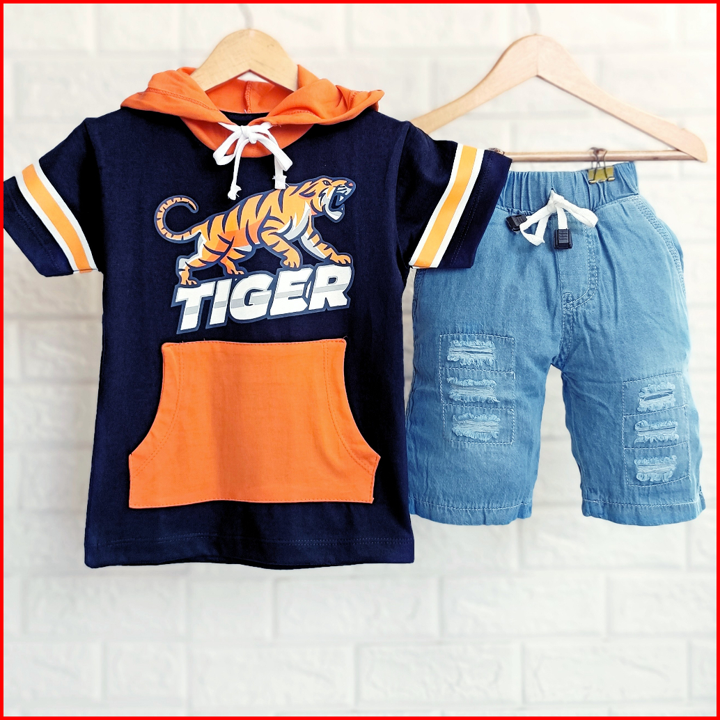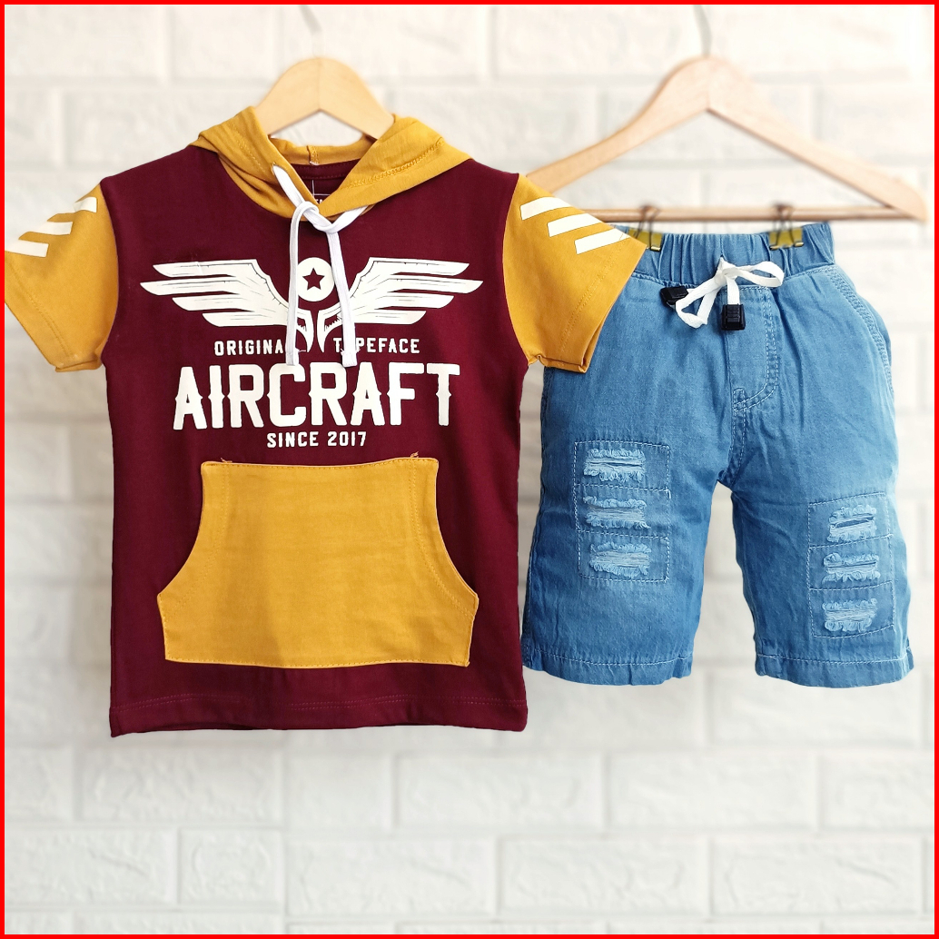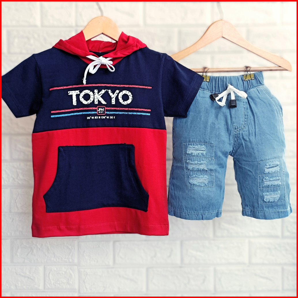 Setelan Anak Cowok Kekinian Baju Kupluk Anak Laki Laki Kaos Hoodie Anak Setelan Kupluk Anak Cowok Denim 1 - 9 Tahun