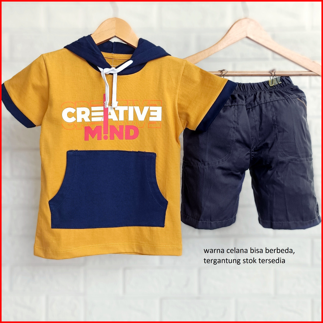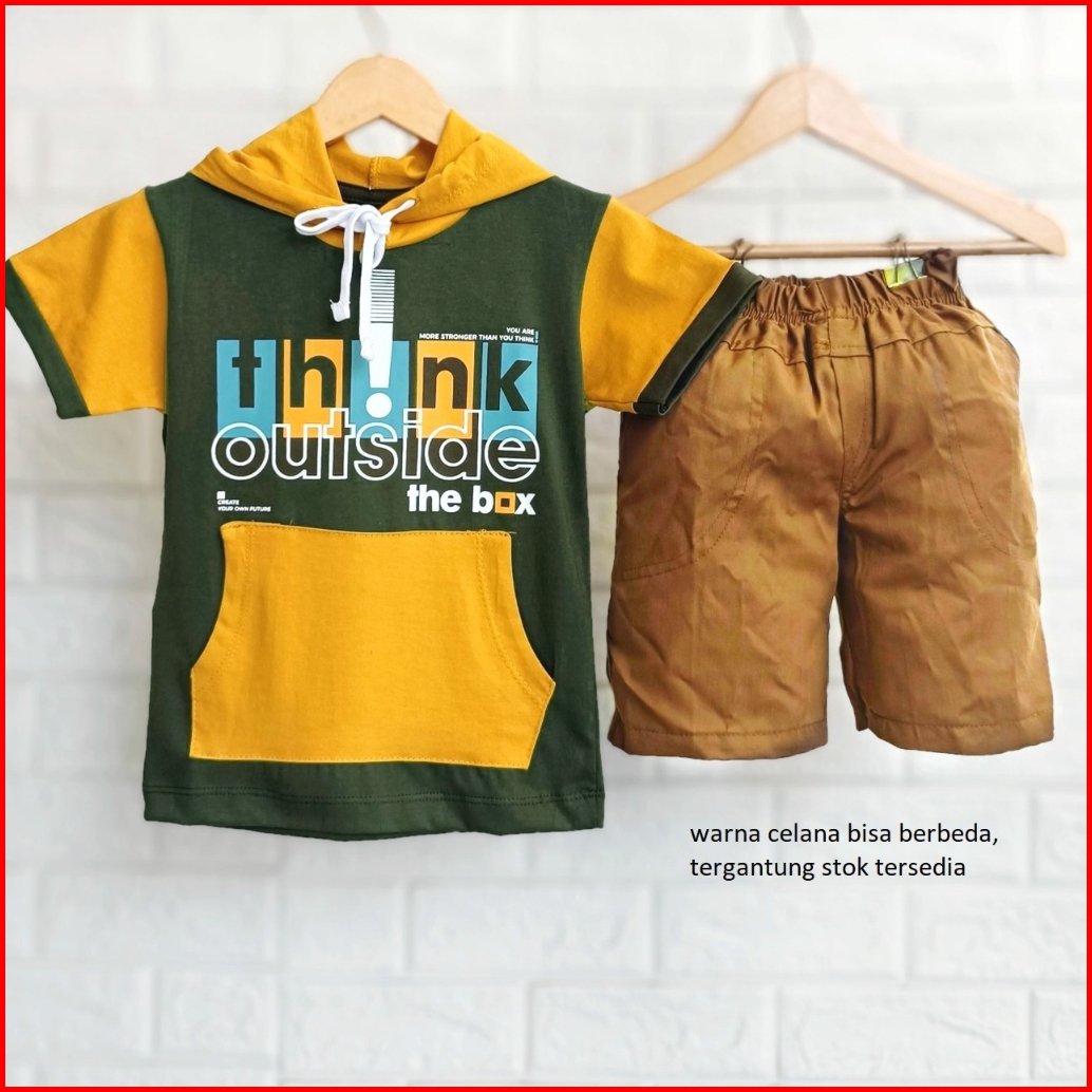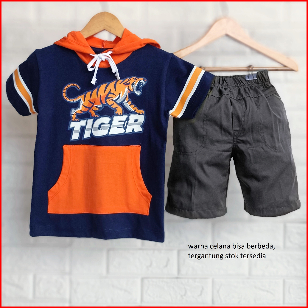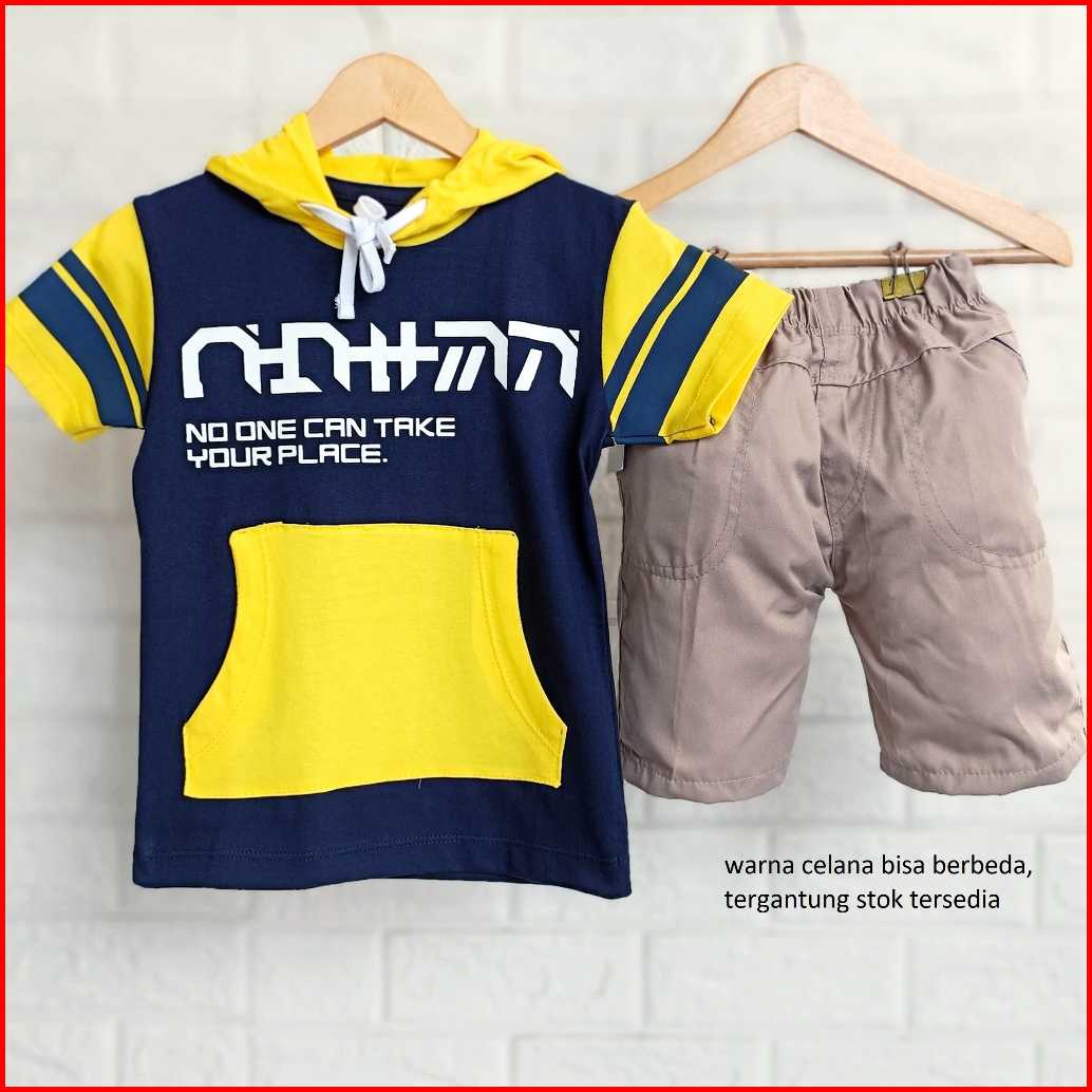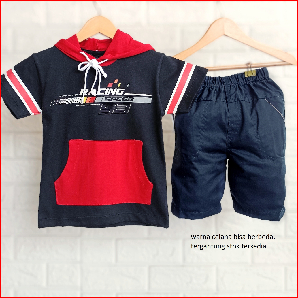 Baju Anak Laki-laki Setelan Kupluk Anak Cowok Baju Hoodie Anak Laki Laki Celana Katun Pendek Kpdk 1 Tahun - 9 Tahun