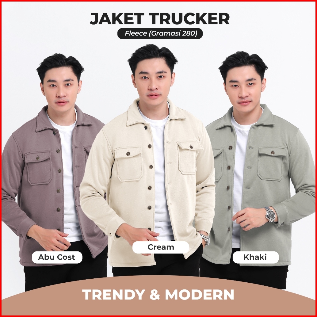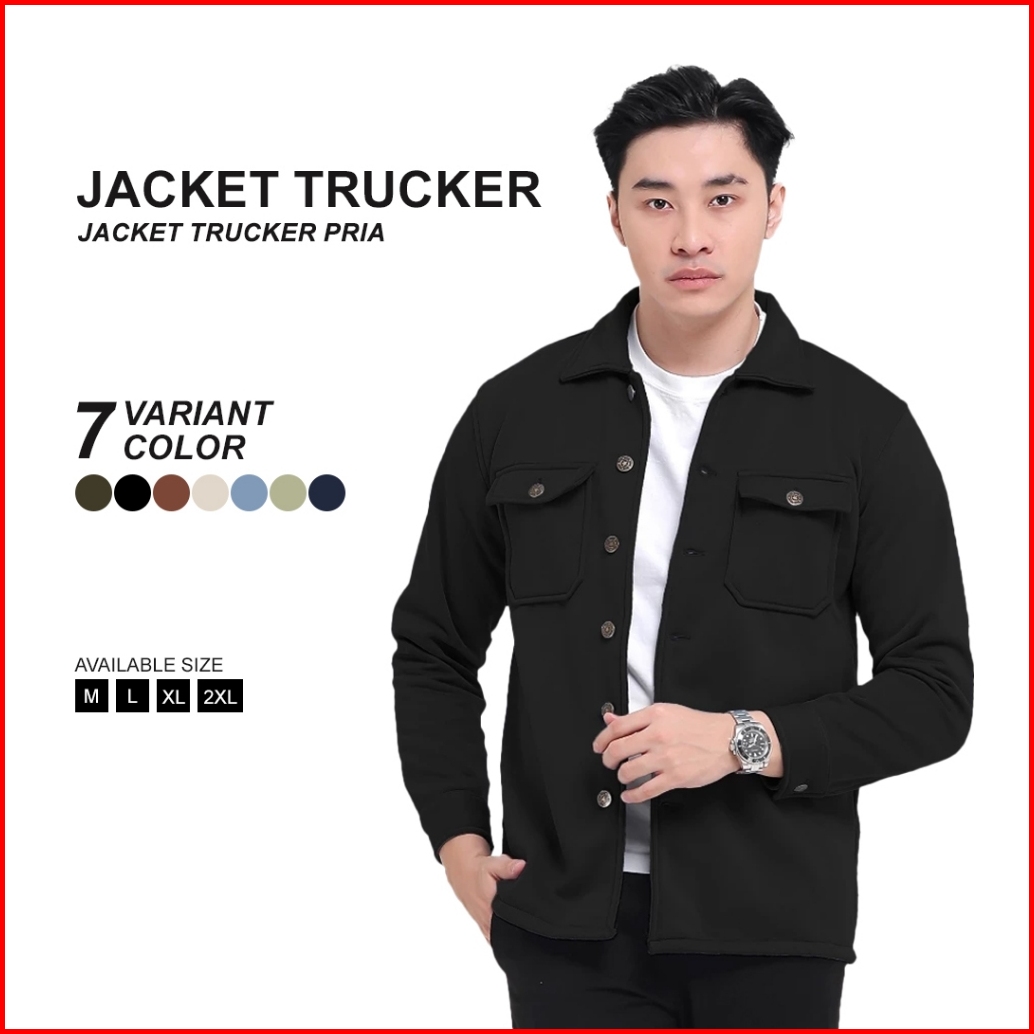 Broguy Jaket Pria Trucker Fleece Tebal - Black