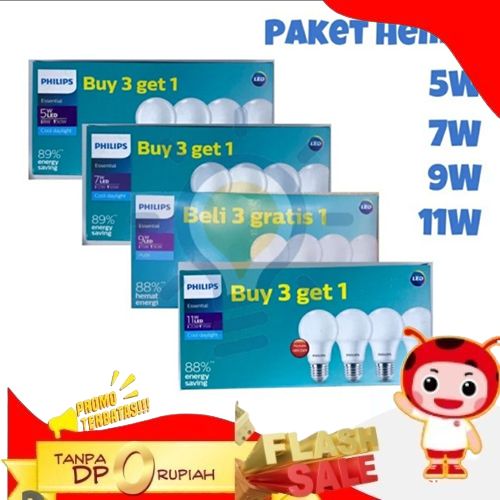 SUPER PHILIPS LED ESSENTIAL PACK/PAKET 5W 7W 9W 11W MULTIPACK 3 FREE 1 PROMO - 7W