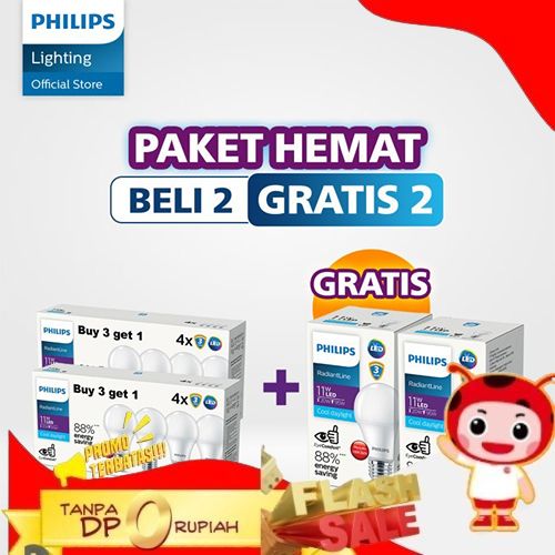 SUPER [PROMO] BELI 2 GRATIS 2 LAMPU PHILIPS LED MULTIPACK RADIANTLINE 11W PUTIH