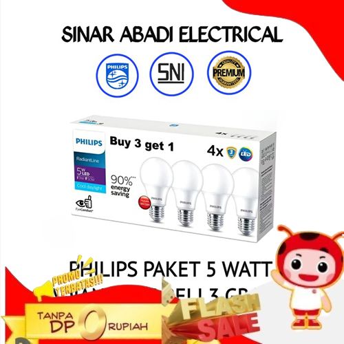 SUPER PAKET LAMPU LED PHILIPS 5W 7W 9W 11W RADIANTLINE BELI 3 GRATIS 1 - 5 WATT