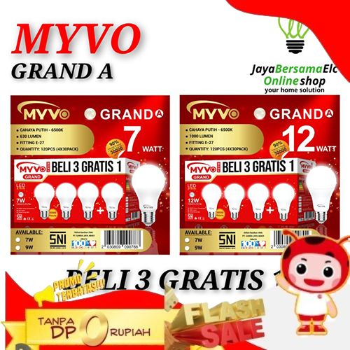 SUPER LAMPU LED BOHLAM PAKET HEMAT (BELI 3 GRATIS 1) MYVO 7W / 12 WATT SNI - PAKET MYVO 7W