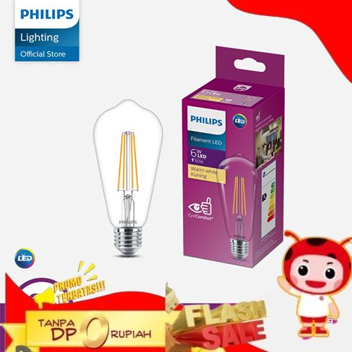 SUPER LAMPU PHILIPS FILAMENT BOHLAM LED 6W ST64 E27 KUNING