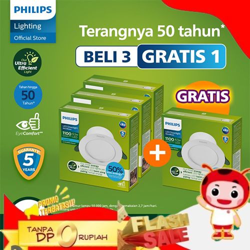 SUPER BELI 3 GRATIS 1 PHILIPS LAMPU DOWNLIGHT ULTRA EFFICIENT 6.5W 65K PUTIH
