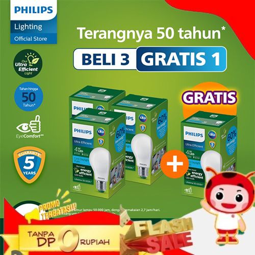 SUPER BELI 3 GRATIS 1 PHILIPS LAMPU BOHLAM LED ULTRA EFFICIENT 4W 65K COOL DAYLIGHT