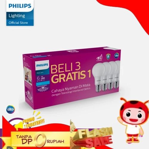 SUPER LAMPU PHILIPS MULTIPACK 6 WATT PAKET MYCARE LEDBULB 8W 10W 12W 6500K - 4 WATT