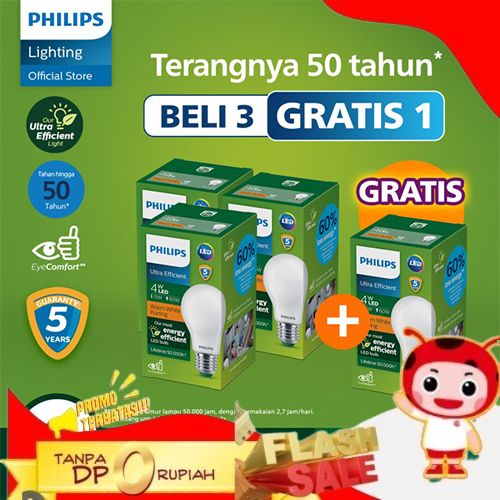 SUPER BELI 3 GRATIS 1 PHILIPS LAMPU BOHLAM LED ULTRA EFFICIENT 4W 27K WARM WHITE