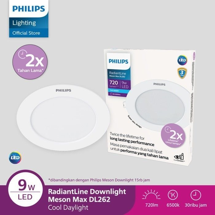 SUPER ( PROMO BULK ) BELI 3 GRATIS 1 LAMPU PHILIPS RADIANTLINE DOWNLIGHT MESON MAX DL262 9W D125 PUTIH