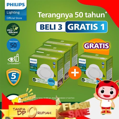 SUPER BELI 3 GRATIS 1 PHILIPS LAMPU DOWNLIGHT ULTRA EFFICIENT 2W 65K PUTIH