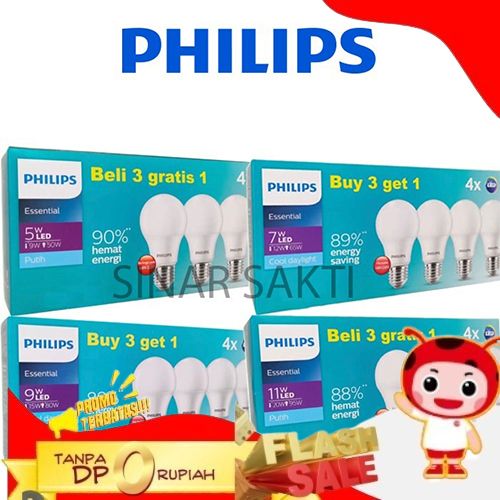 SUPER PHILIPS PAKET LAMPU LED ESSENTIAL 5W 7W 9W 11W PUTIH MULTIPACK - 5W