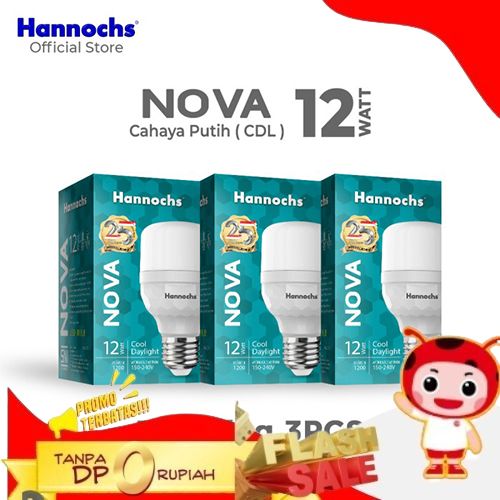 SUPER HANNOCHS LAMPU BOHLAM LED NOVA 12W CAHAYA PUTIH PAKET ISI 3PCS